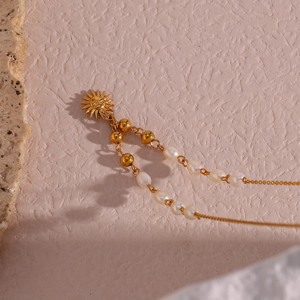 Retro Sun Stainless Steel Plating Pearl Pendant Necklace