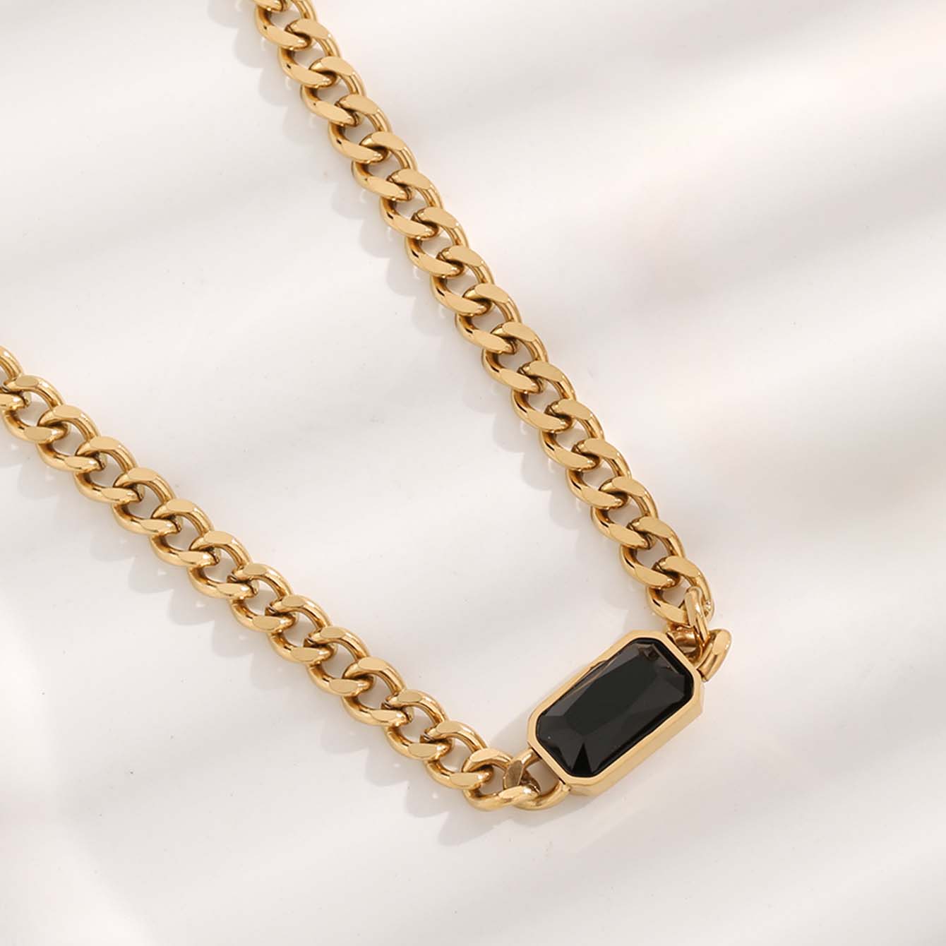 Roman Style Solid Color Resin Titanium Steel Plating Inlay Zircon Gold Plated Pendant Necklace