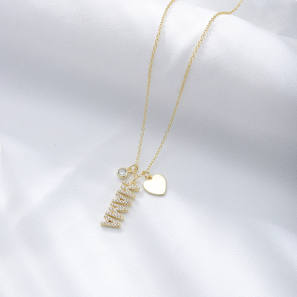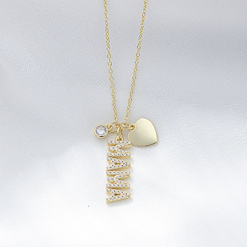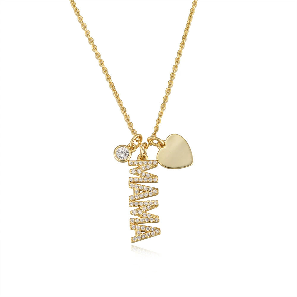 S925 Sterling Silver Mama Letter Diamond Pendant Cross Chain Necklace For Women