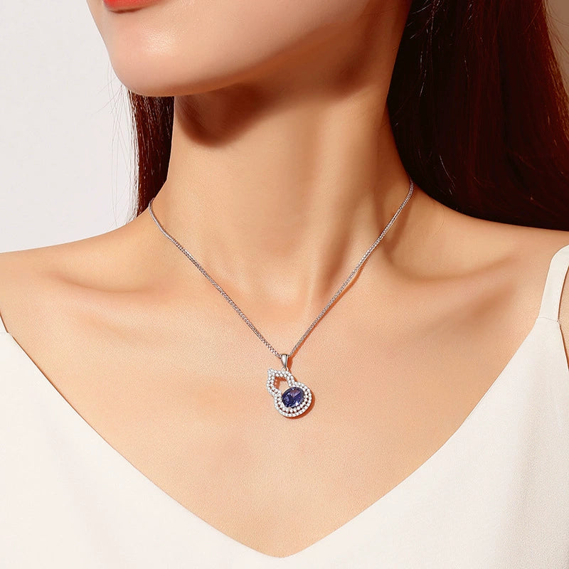 Silver Gourd Women's Necklace With High Carbon Diamond And Retro Design