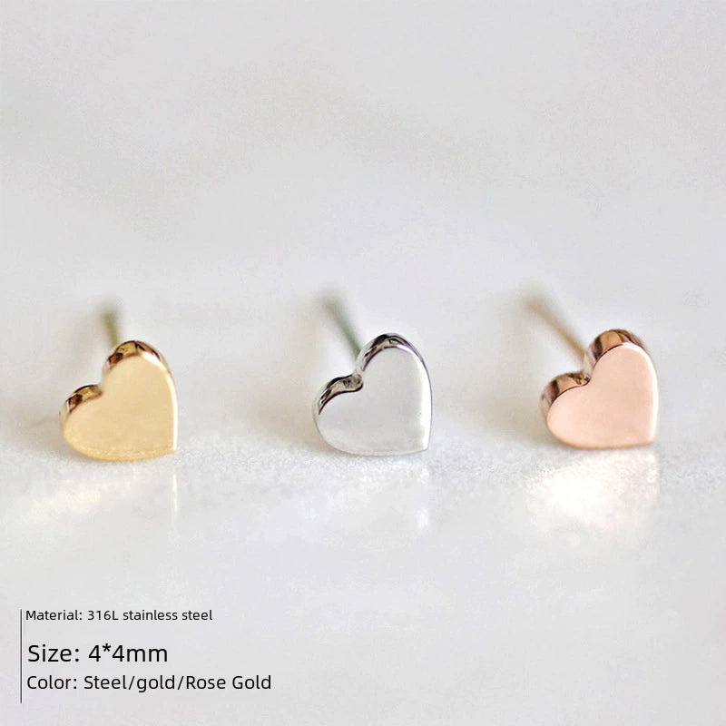 Simple Goldplated Stainless Steel Heart Shaped Ladies Earrings New Accessories Wholesale