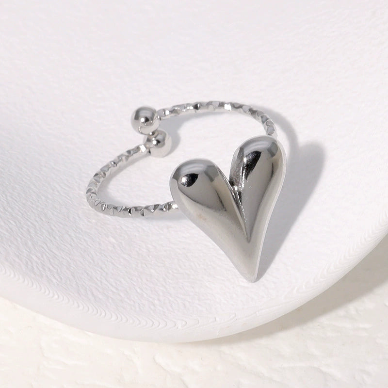 Simple Nonfading Loveshaped Open Ring French Retro Style Highgrade Goldplated Stainless Steel