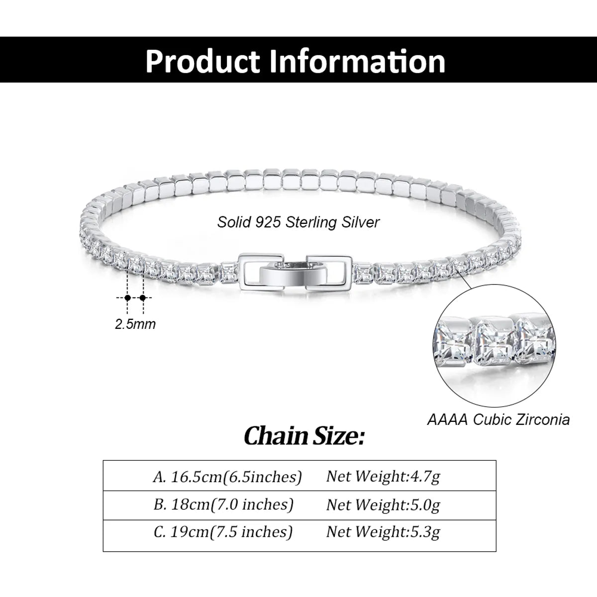 Simple Style Classic Style Shiny Square Solid Color Sterling Silver Plating Inlay Zircon White Gold Plated Bracelets