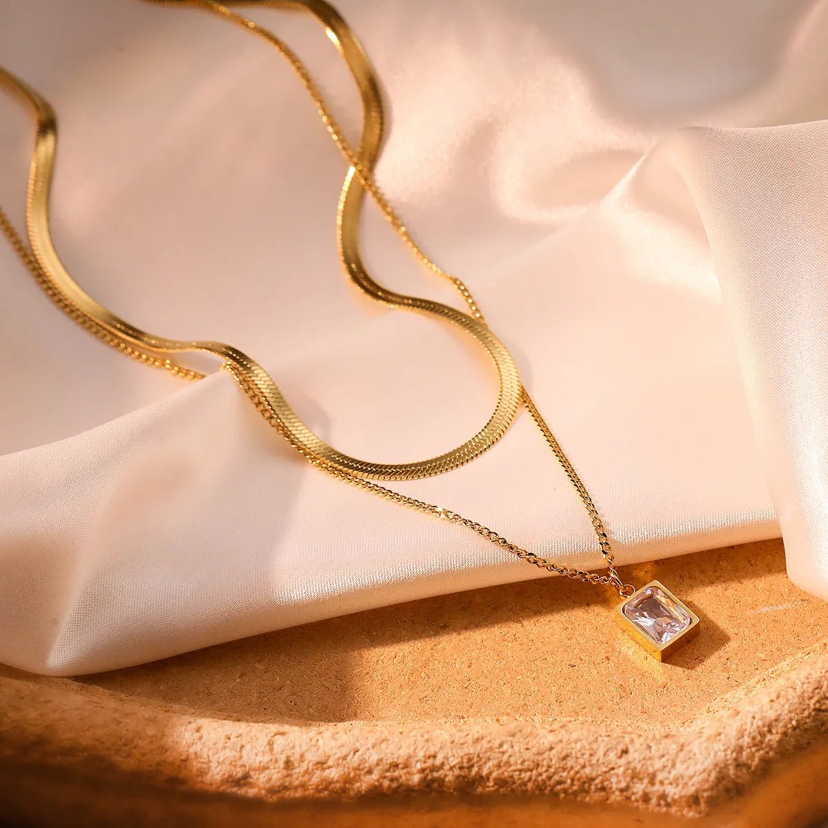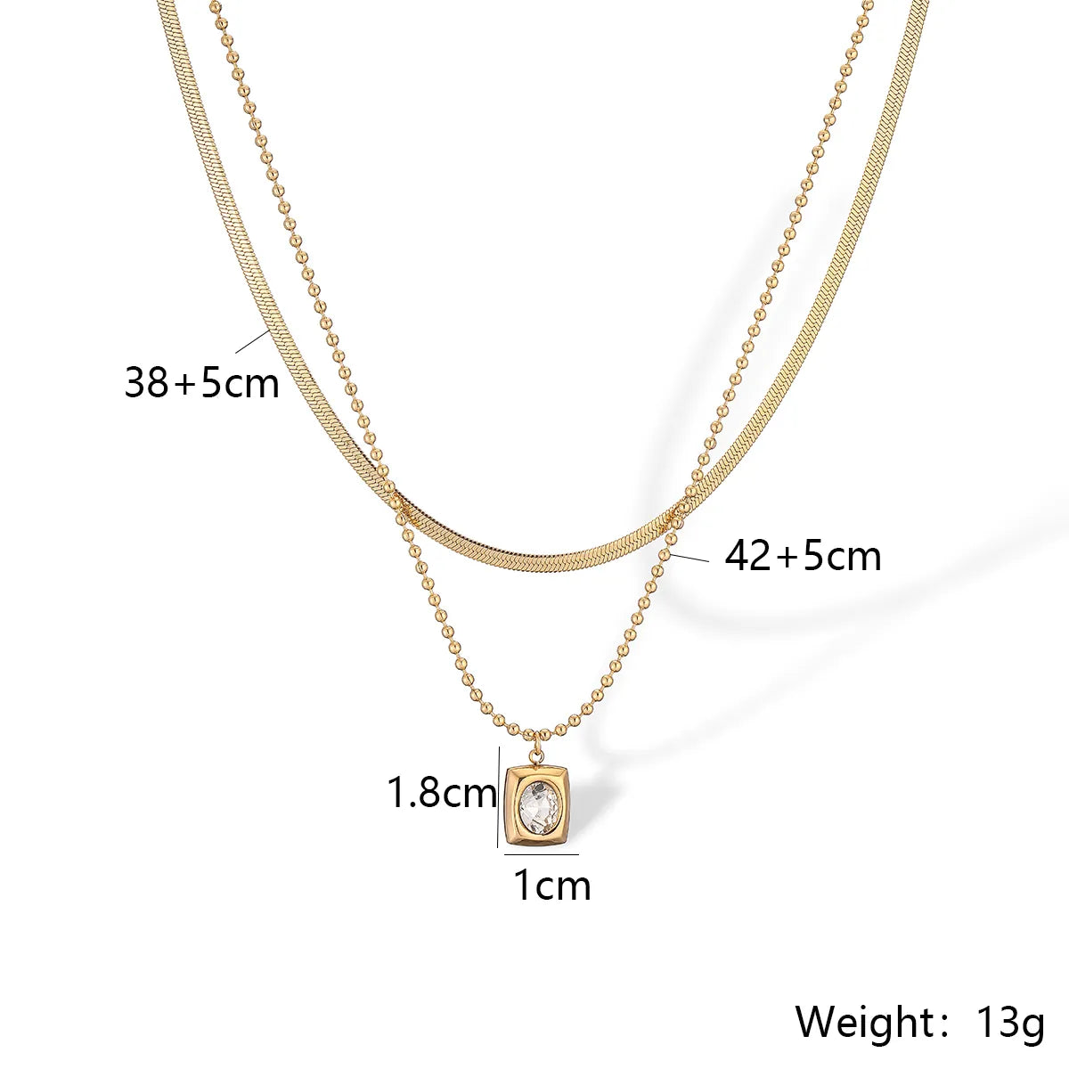 Simple Style Commute Square Titanium Steel Plating Inlay Zircon 18k Gold Plated Pendant Necklace