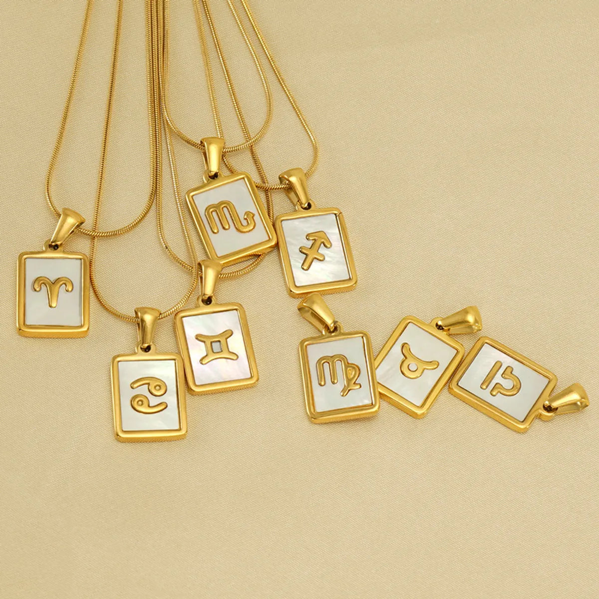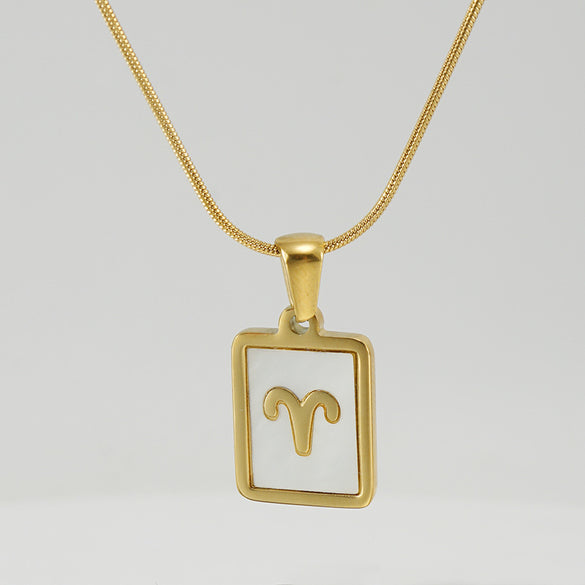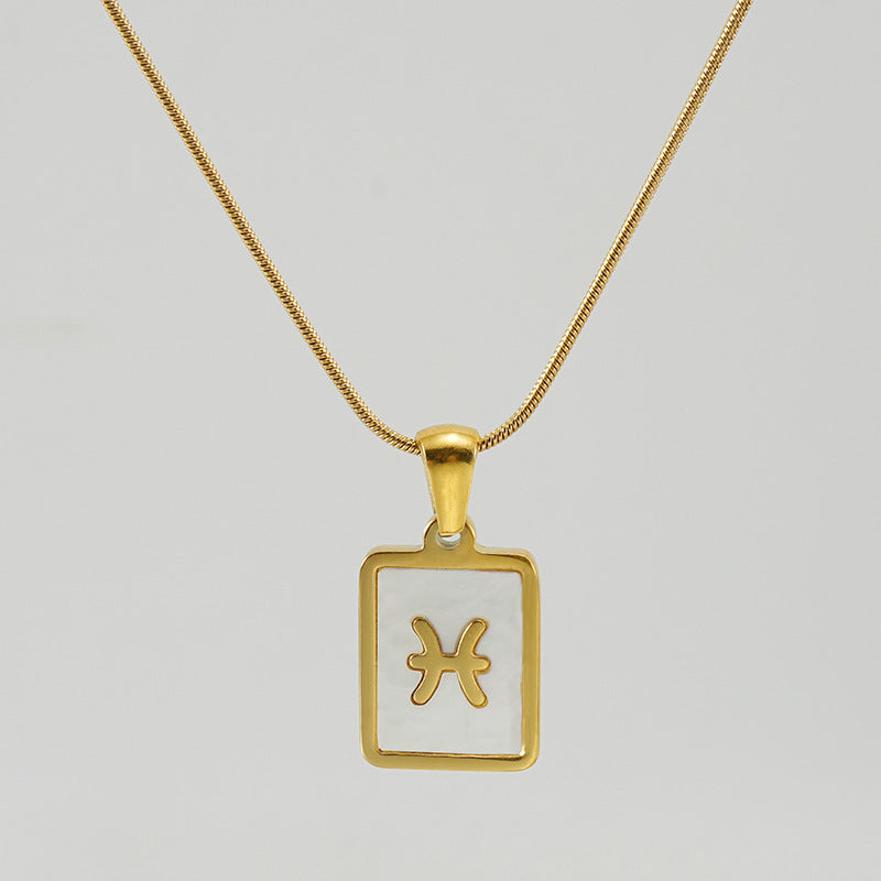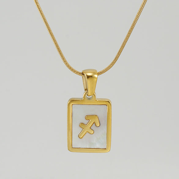 Simple Style Constellation Stainless Steel Plating Inlay Shell 18k Gold Plated Pendant Necklace