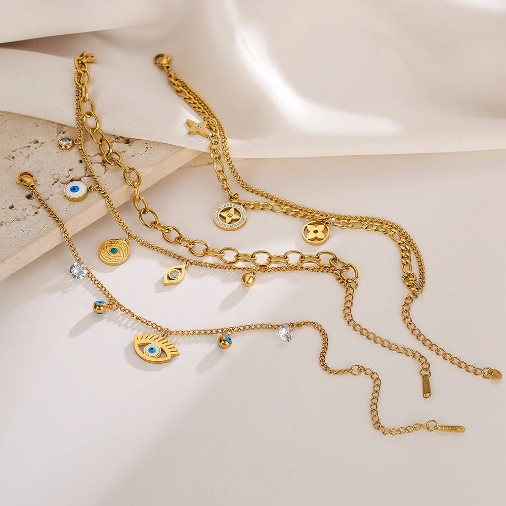 Simple Style Devil'S Eye 304 Stainless Steel 18K Gold Plated Zircon Bracelets In Bulk