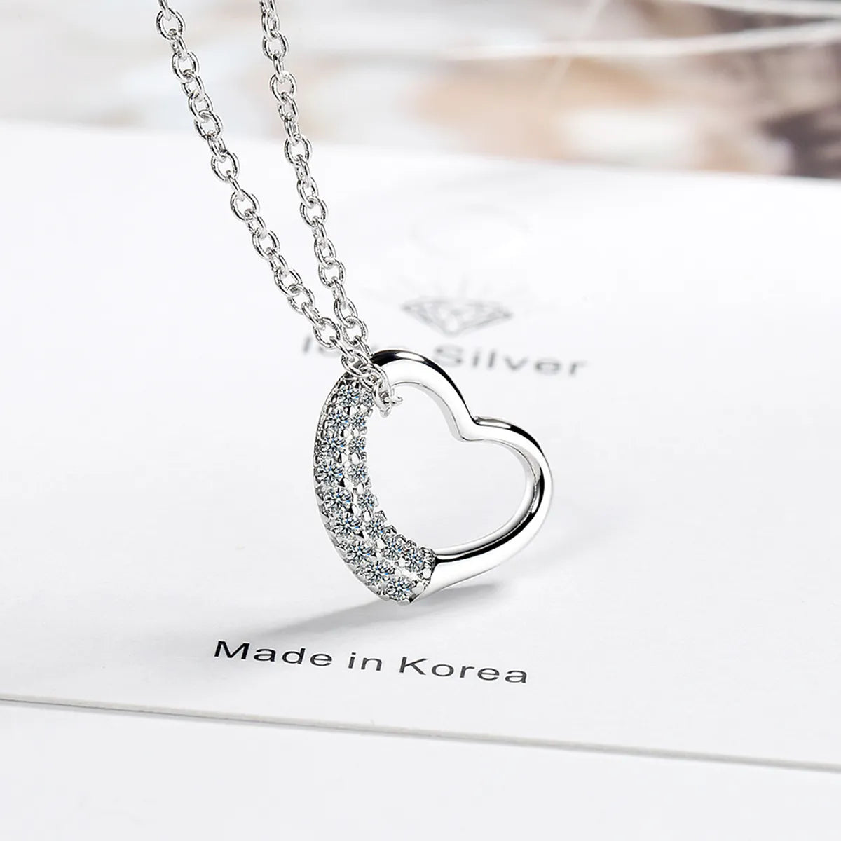 Simple Style Heart Shape Copper Inlay Zircon Pendant Necklace