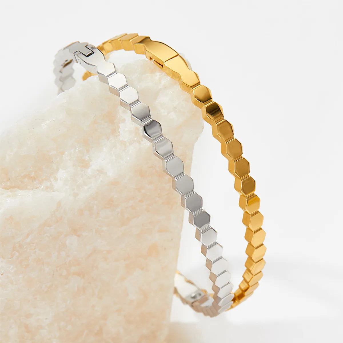 Simple Style Hexagon 304 Stainless Steel 16K Gold Plated White Gold Plated Gold Plated No Inlaid Bangle In Bulk