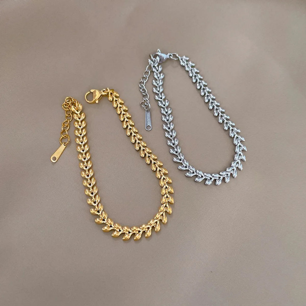 Simple Style Leaf Titanium Steel Plating Bracelets