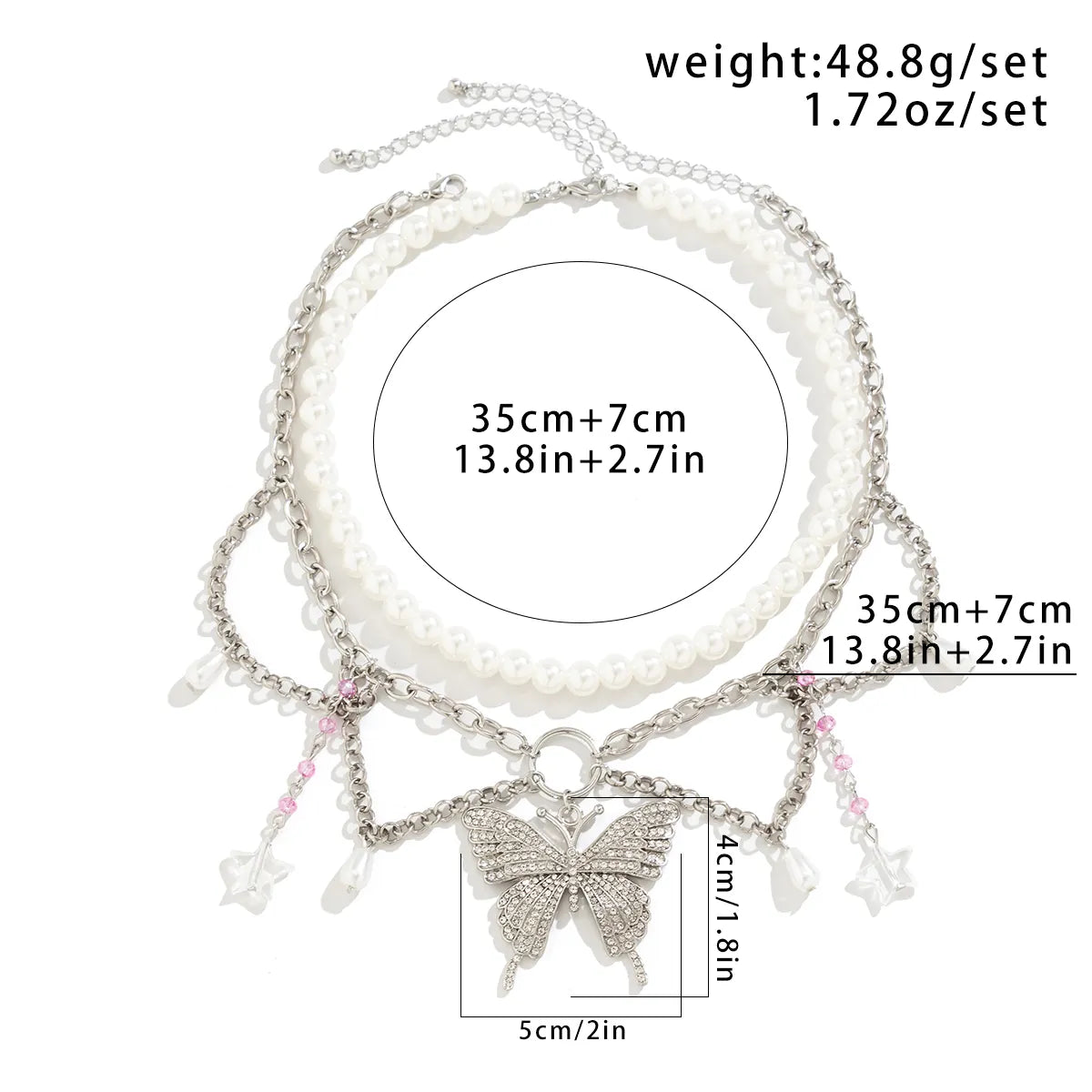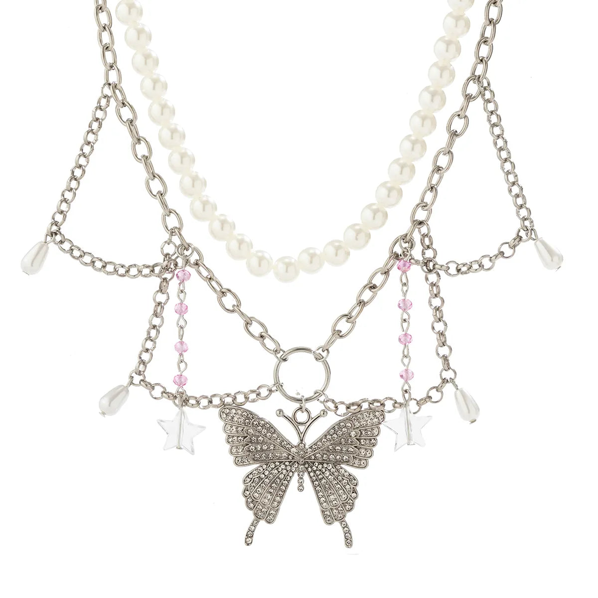 Simple Style Round Butterfly Imitation Pearl Alloy Iron Inlay Rhinestones Women's Pendant Necklace