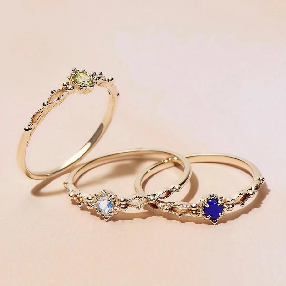 Simple Style U Shape Copper Plating Inlay Artificial Gemstones 18k Gold Plated Rings