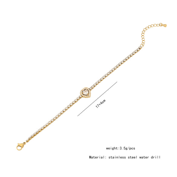 Simple Style Water Droplets Heart Shape Stainless Steel Plating Inlay Zircon Bracelets