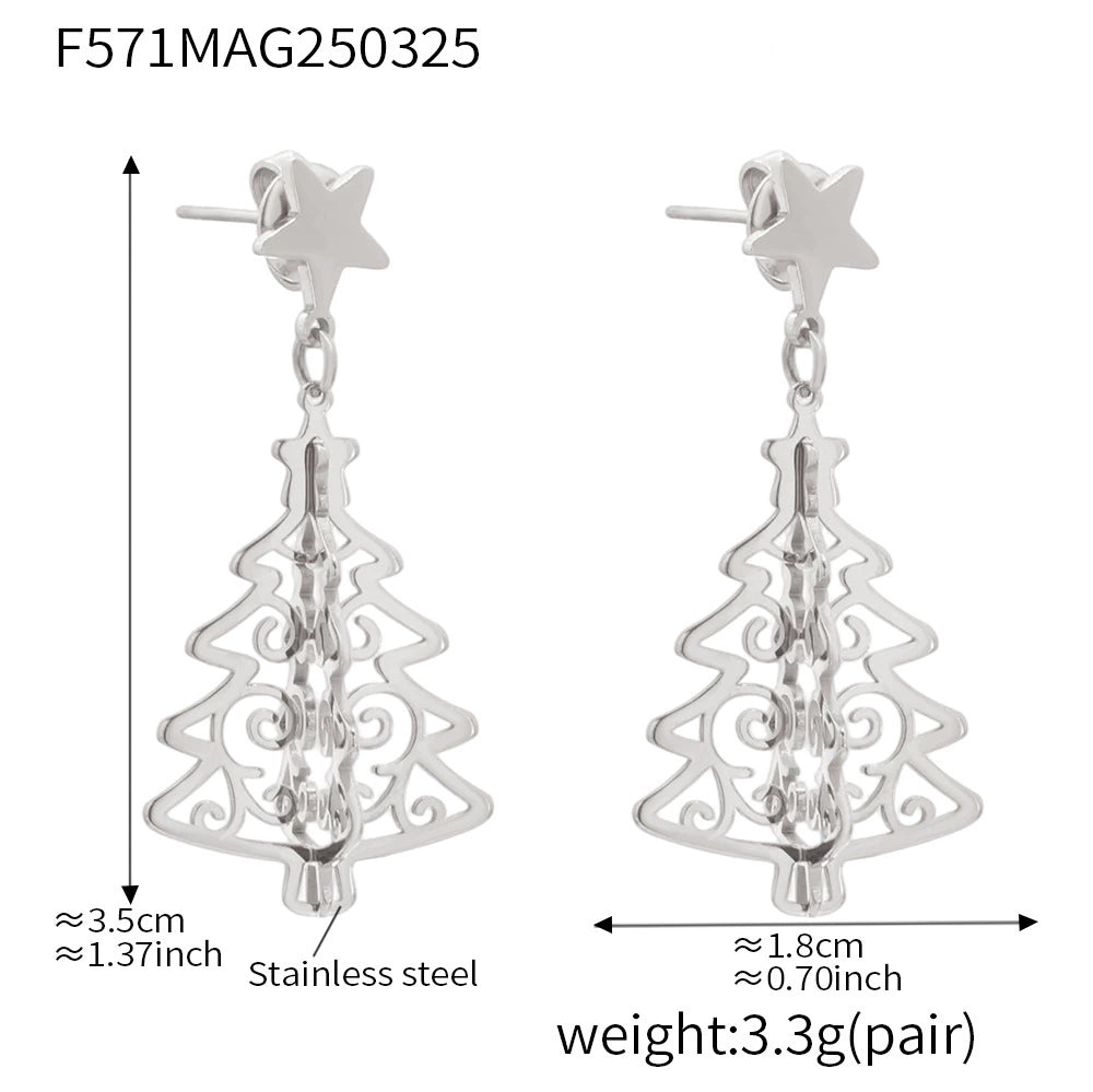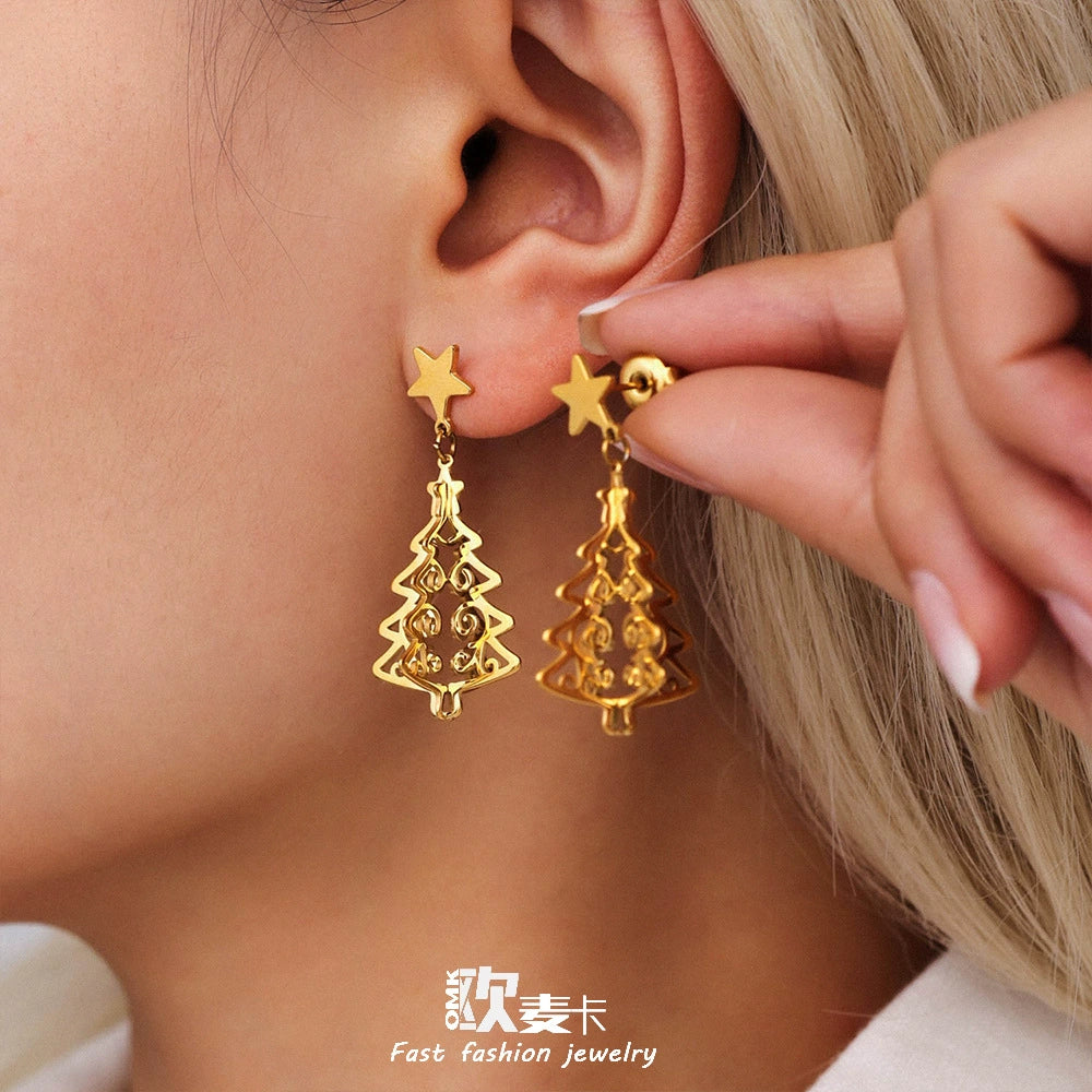 Small Tree Earrings Stainless Steel Geometric Light Luxury Electroplated 18K Real Gold Women's