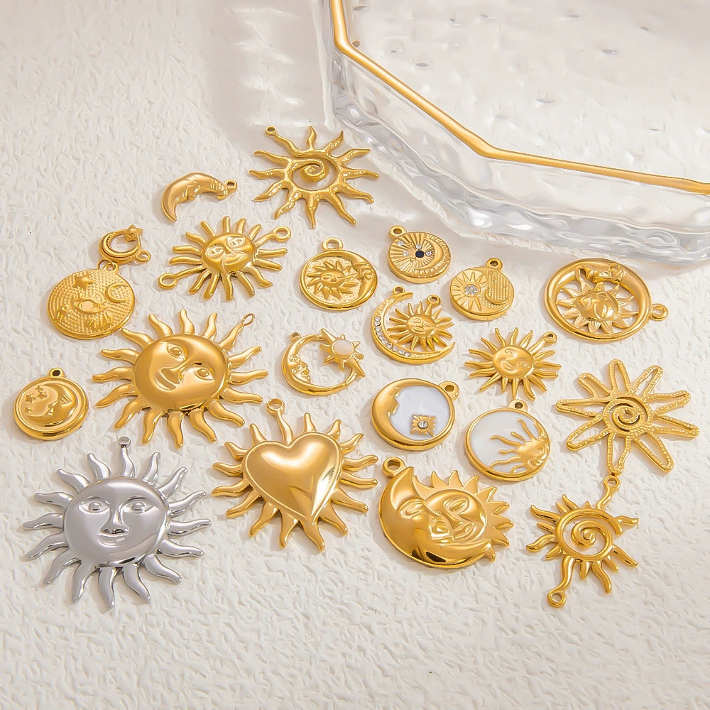 Stainless Steel 18K Gold Plated Jewelry Accessories Sun Love Pendant Bracelet Necklace Handmade