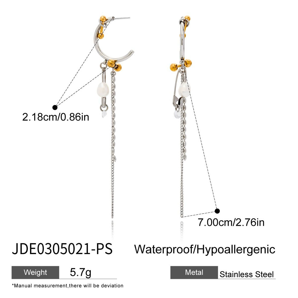 Stainless Steel Geometric Tassel Pearl Earrings Electroplated Women's Jewelry