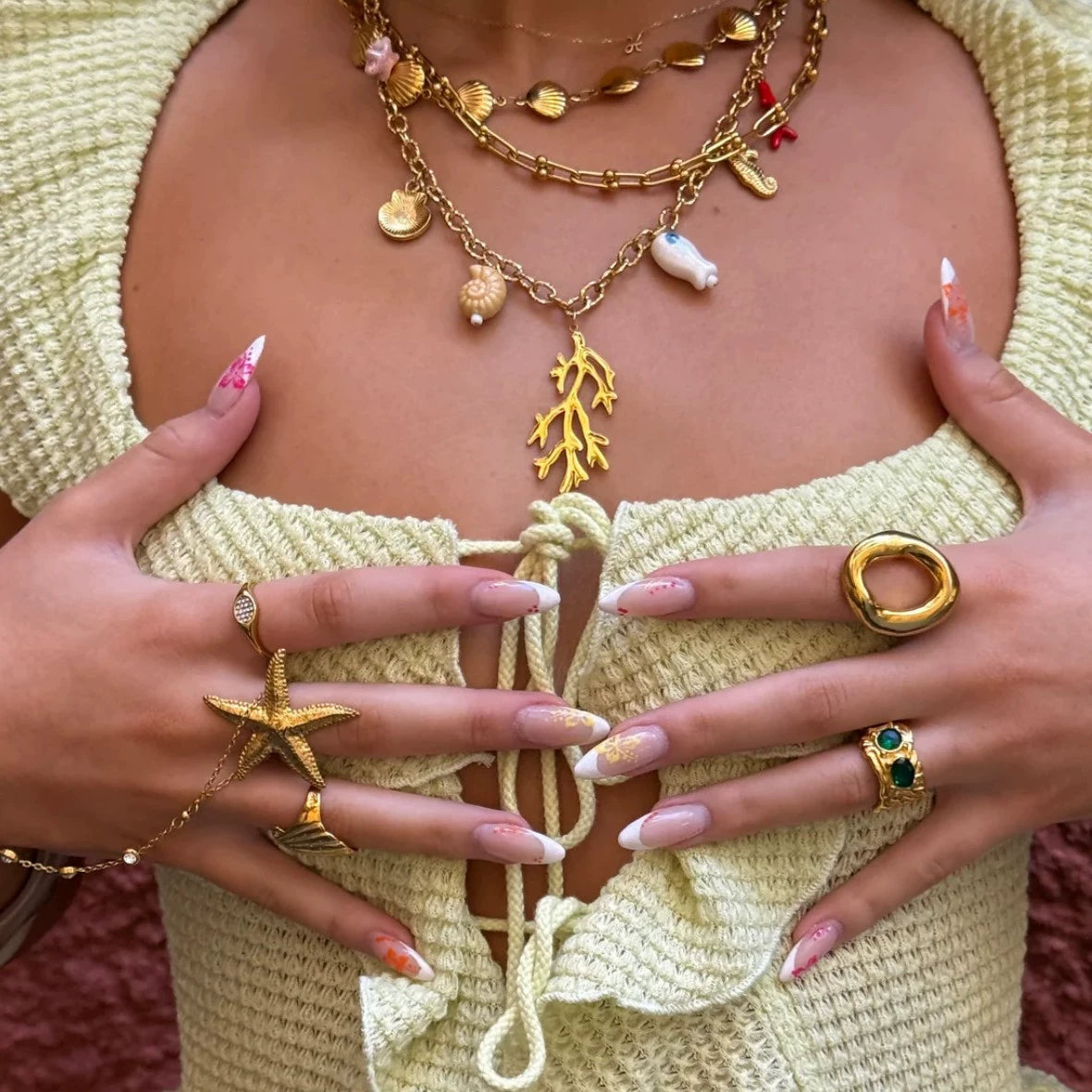 Stainless Steel Jewelry Geometric Ring Marine Series Starfish And Conch Electroplated