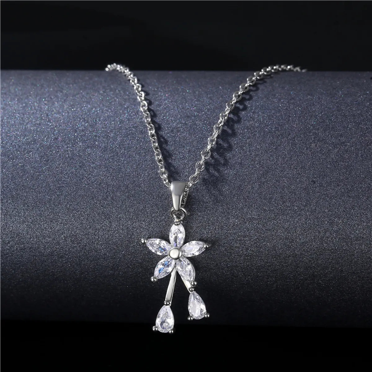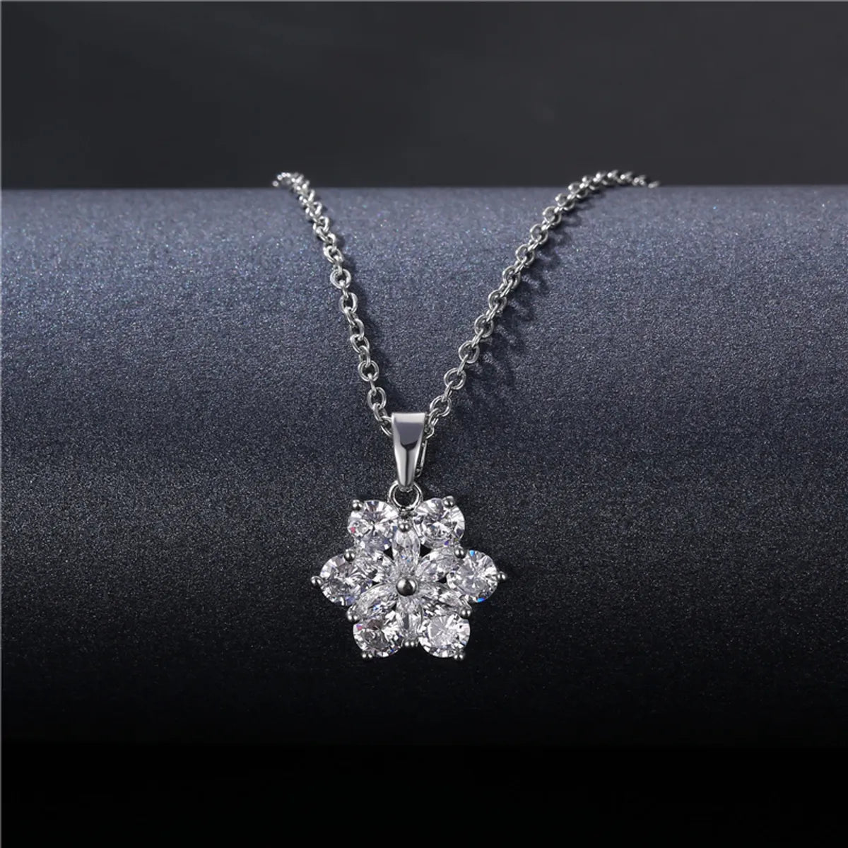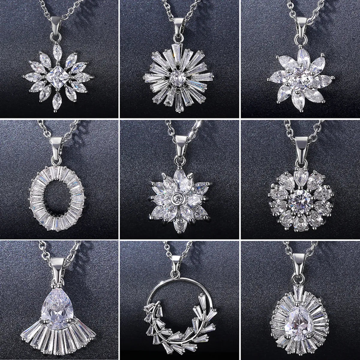 Stainless Steel Titanium Steel White Gold Plated Simple Style Plating Inlay Water Droplets Flower Zircon Pendant Necklace