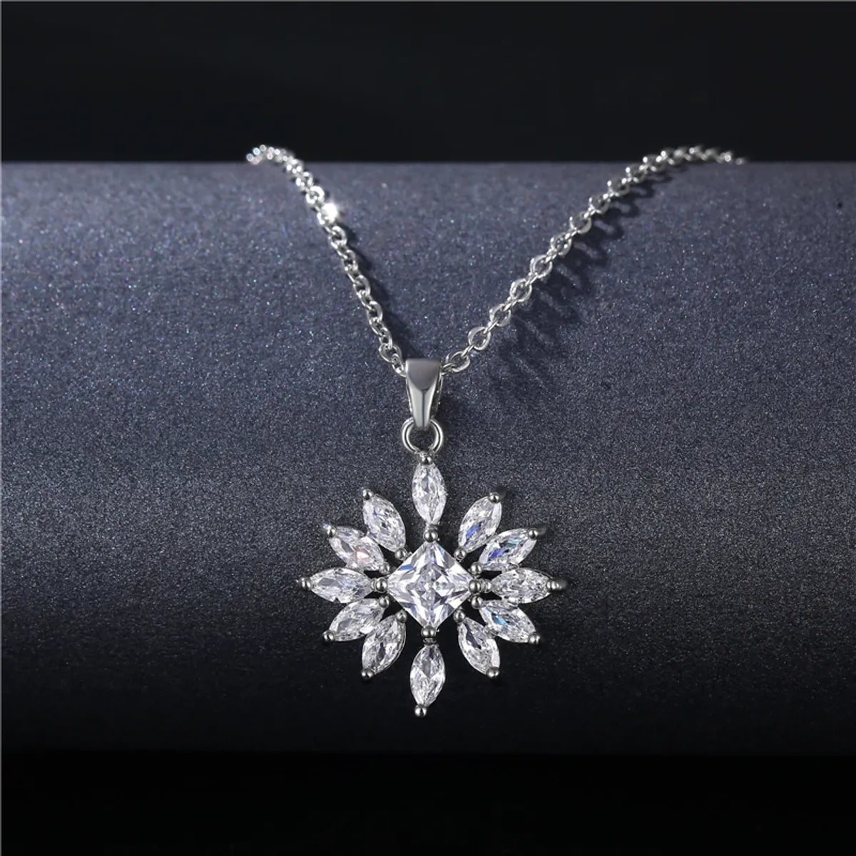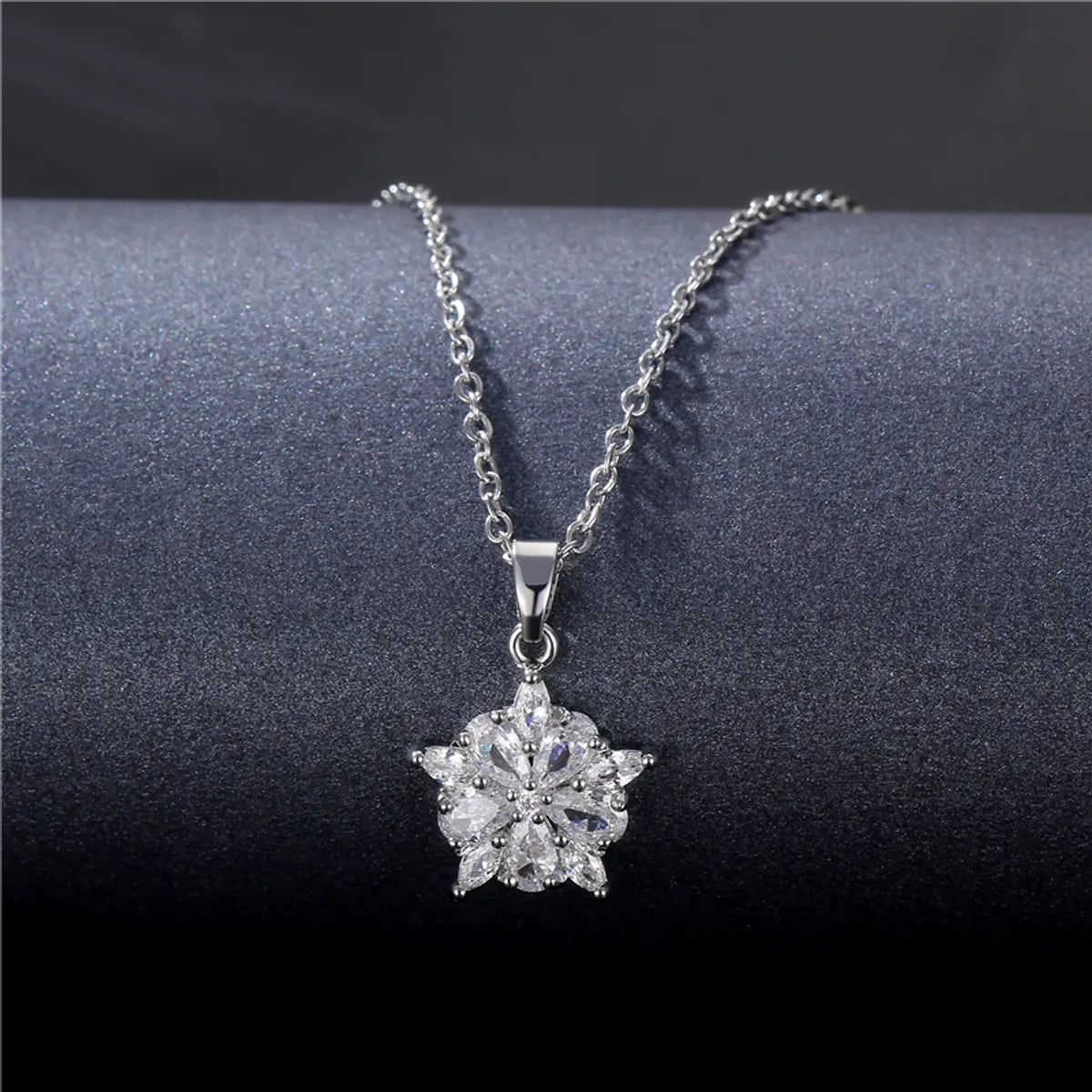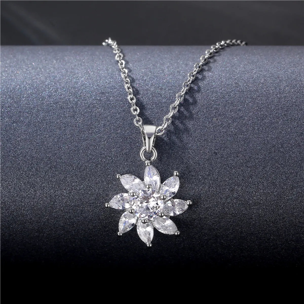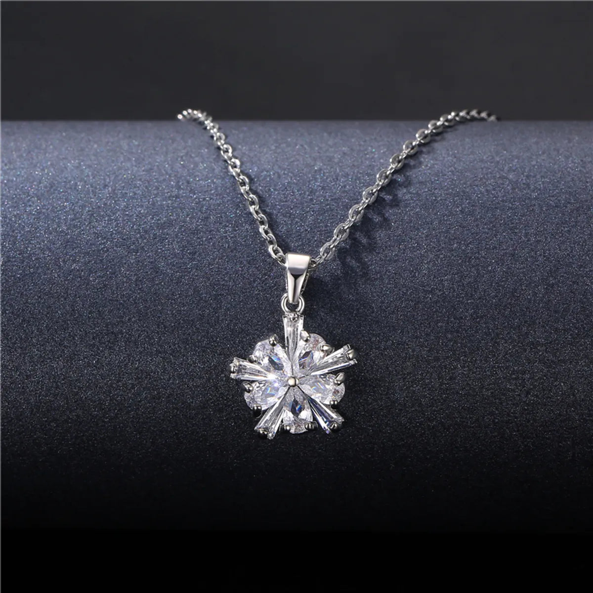 Stainless Steel Titanium Steel White Gold Plated Simple Style Plating Inlay Water Droplets Flower Zircon Pendant Necklace