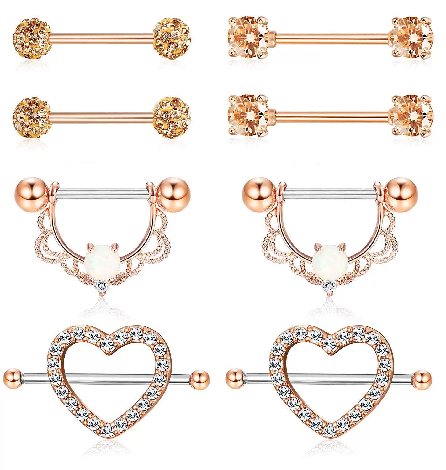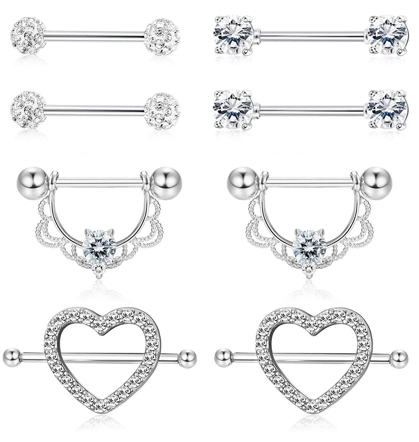 Stainless Steel Zircon 4 Pairs Of Milk Ring Set Diamond Nail Milk Jewelry Wholesale