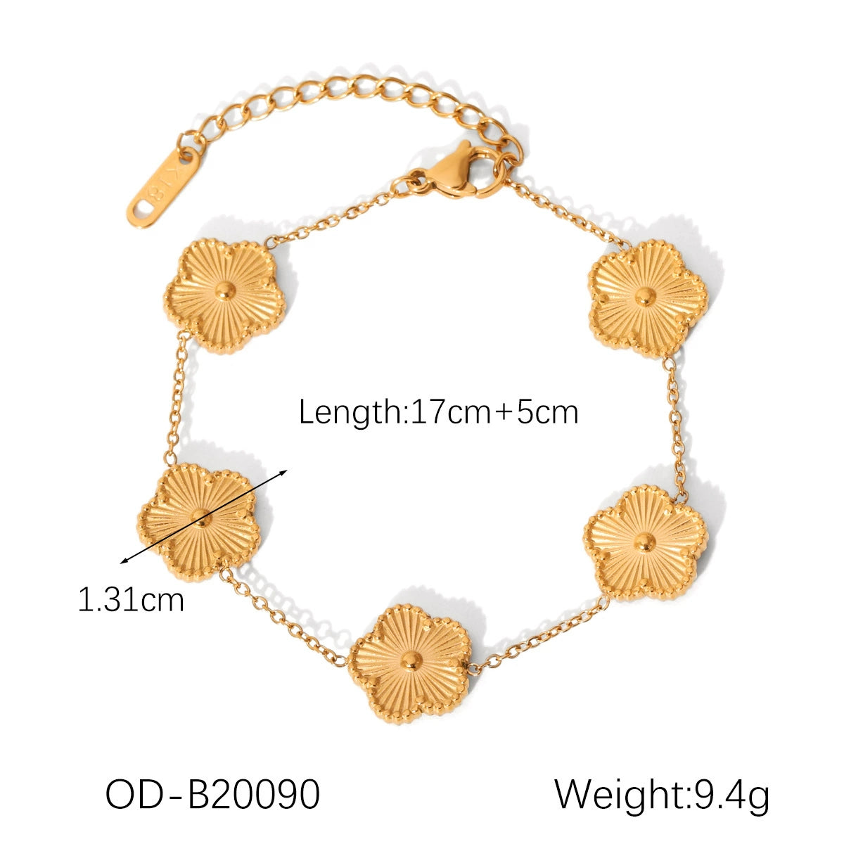 Star And Moon Fashion Trendy Stainless Steel Bracelet For Women With Flower Shape Pvd Vacuum Plating