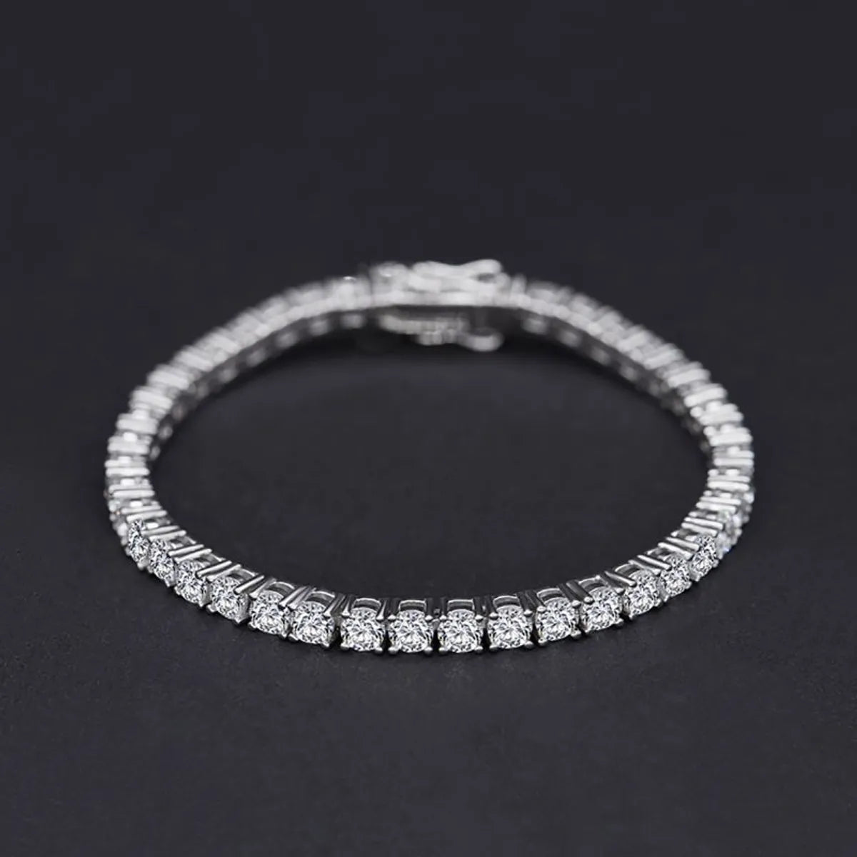 Streetwear Solid Color Sterling Silver Plating Inlay Artificial Diamond Silver Plated Bracelets