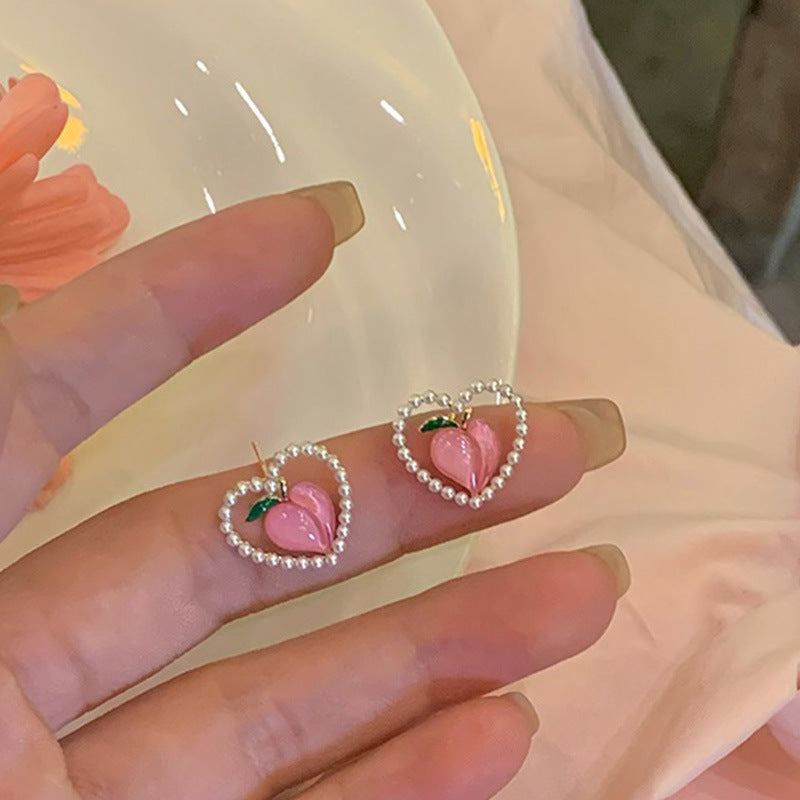 Sweet Heart Shape Flower Copper Plating Inlay Pearl Zircon Drop Earrings Ear Studs 1 Pair