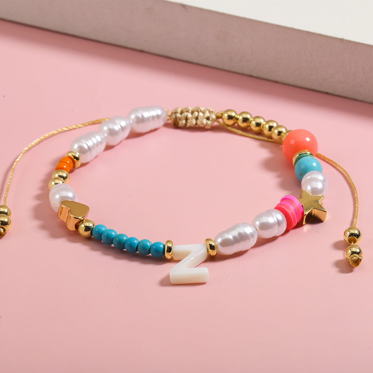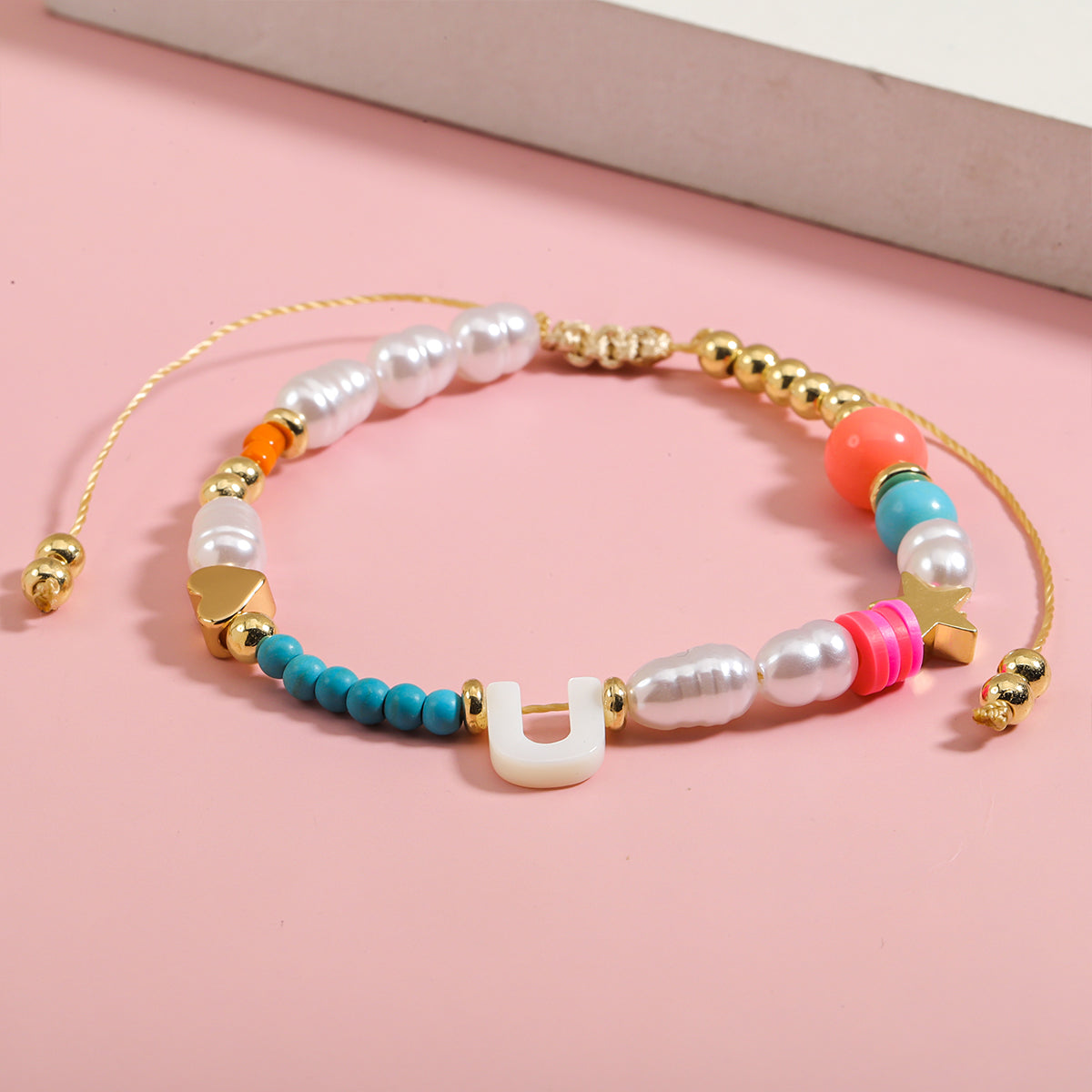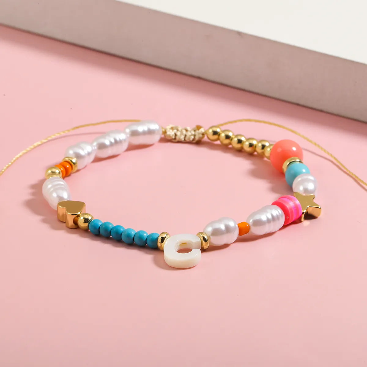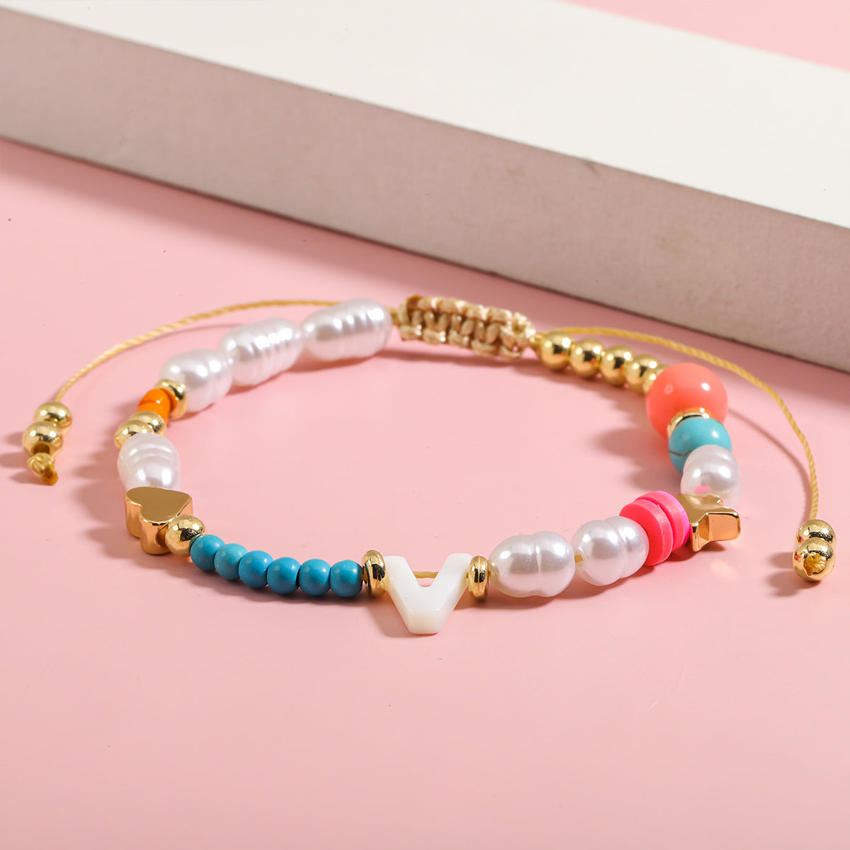 Sweet Letter Heart Shape Imitation Pearl Rope Beaded Women's Bracelets