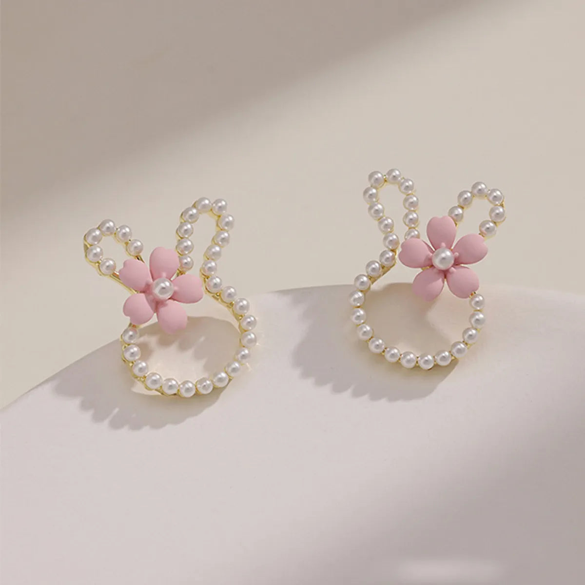 Sweet Rabbit Alloy Inlay Pearl Women's Ear Studs 1 Pair