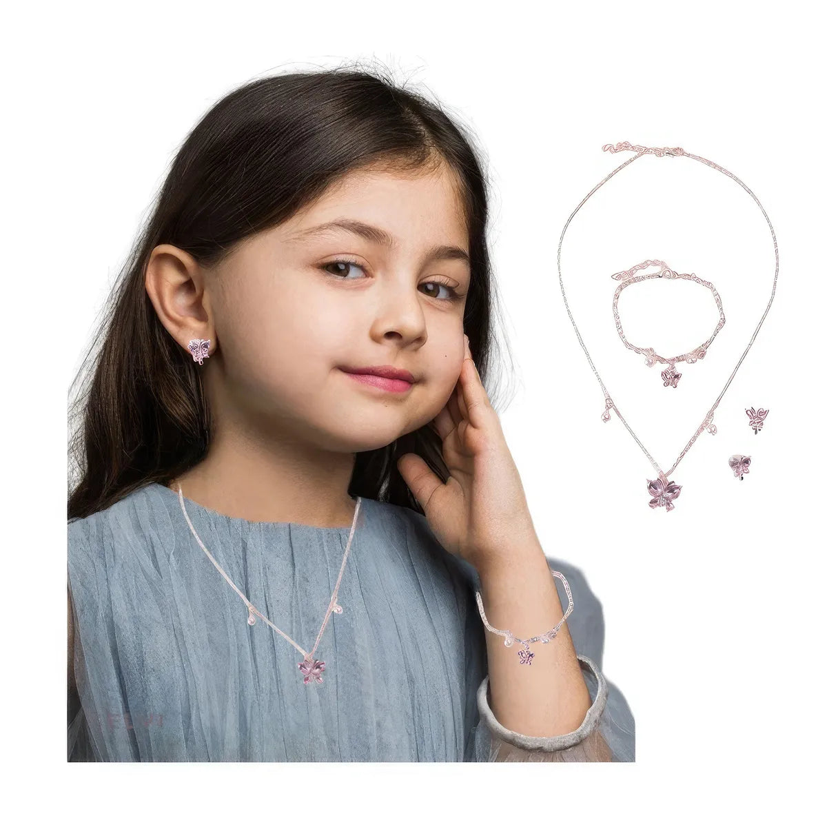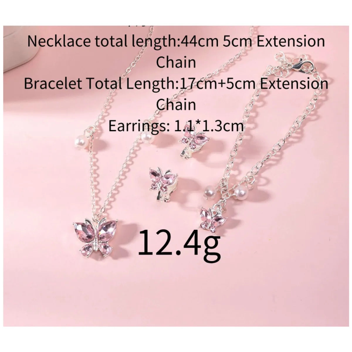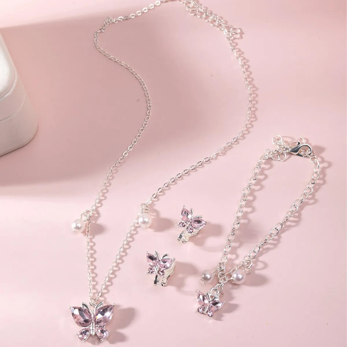 Sweet Shiny Butterfly Alloy Pearl Inlay Rhinestones Girl'S Jewelry Set