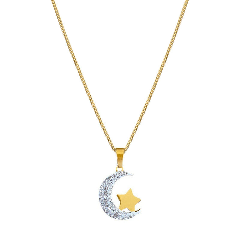 Titanium Steel Moon And Star Geometric Fashion Necklace For Women