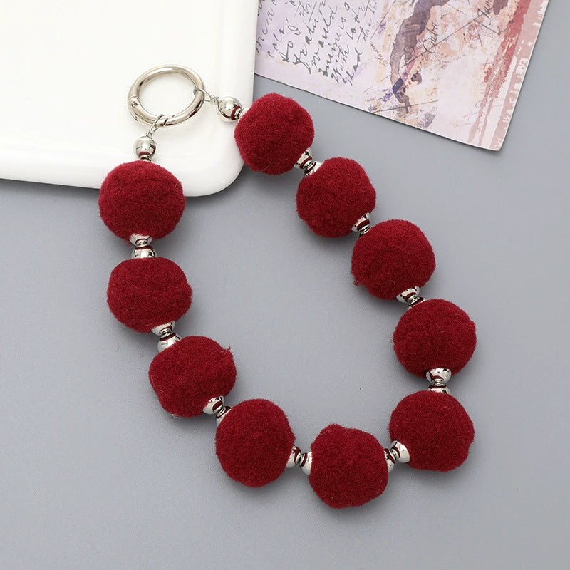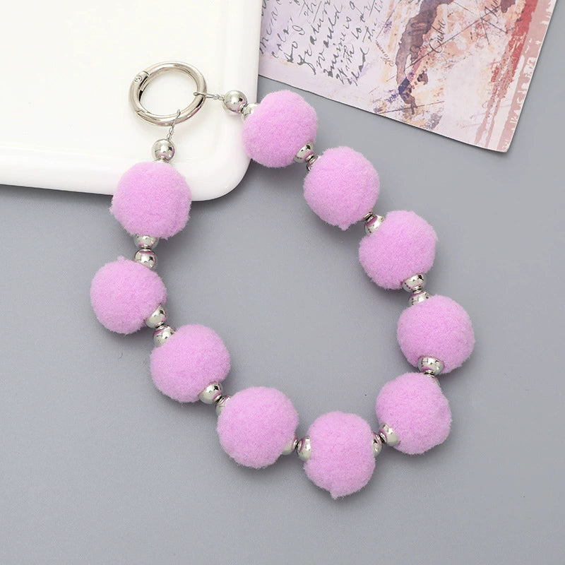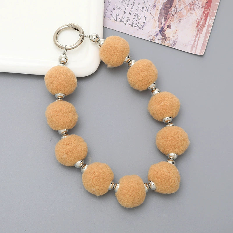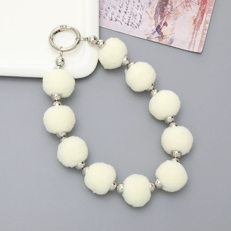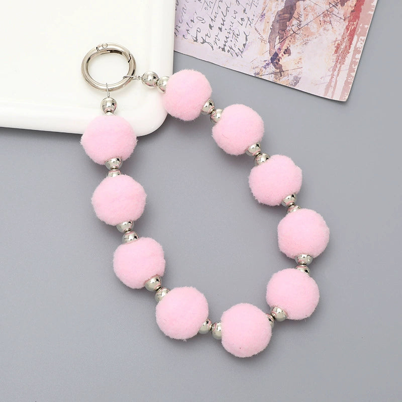 Universal Phone Case Lanyard Semihandmade With Plush Ball Bead Pendant