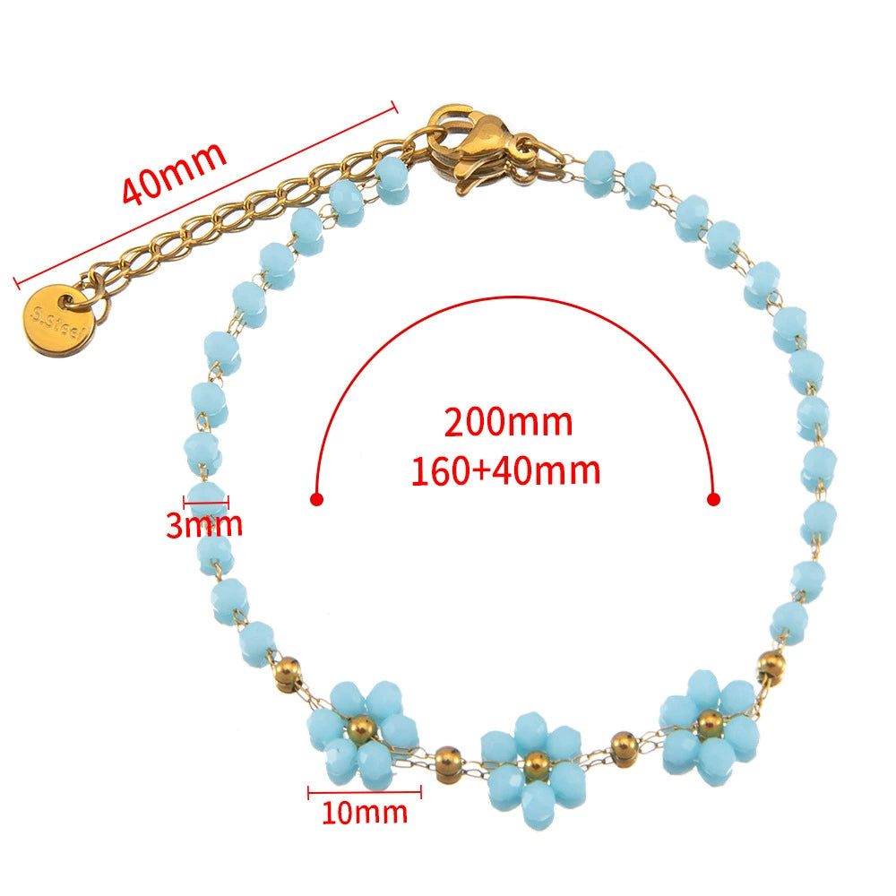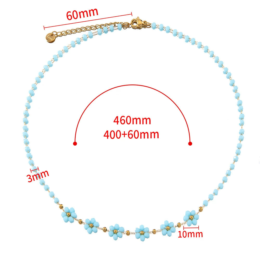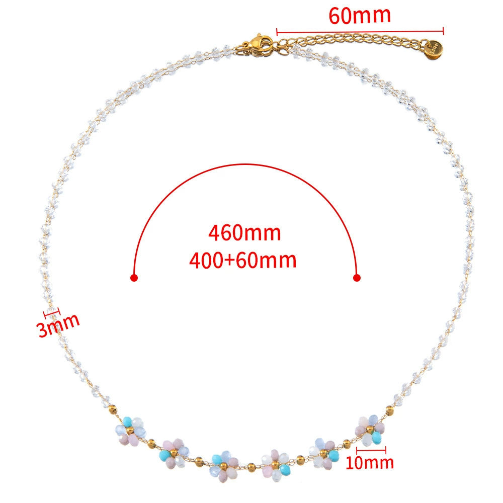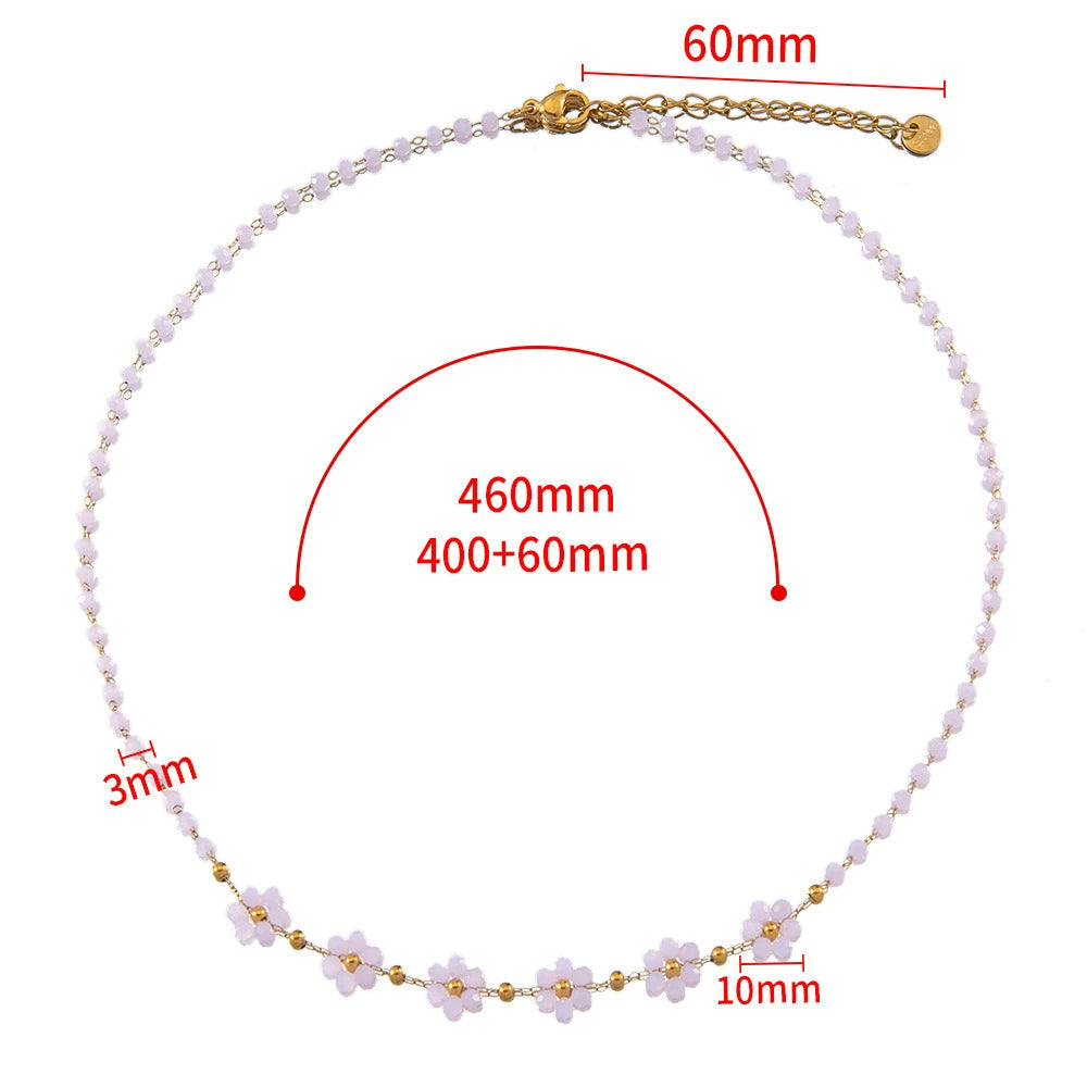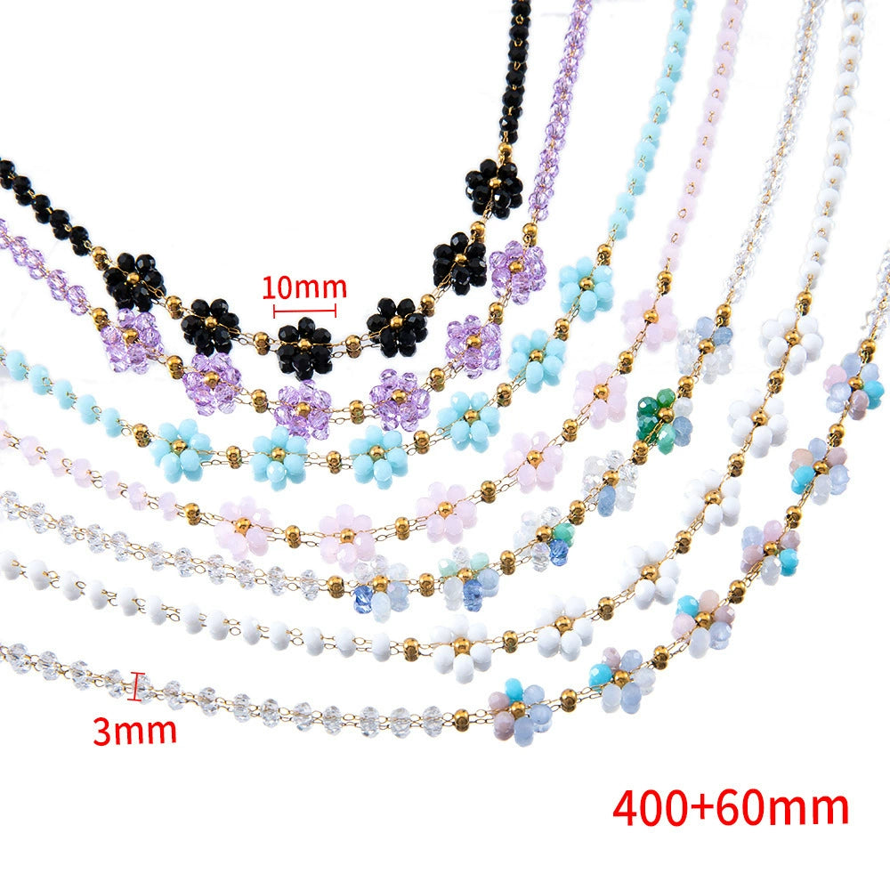 Vintage Small Fresh Daisy Flower Stainless Steel Woven Crystal Chain Electroplated Bracelet Necklace