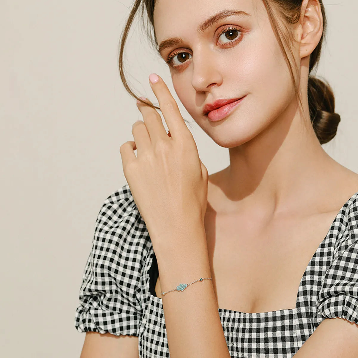 Vintage Style Palm Sterling Silver Plating Inlay Turquoise Rhodium Plated Bracelets