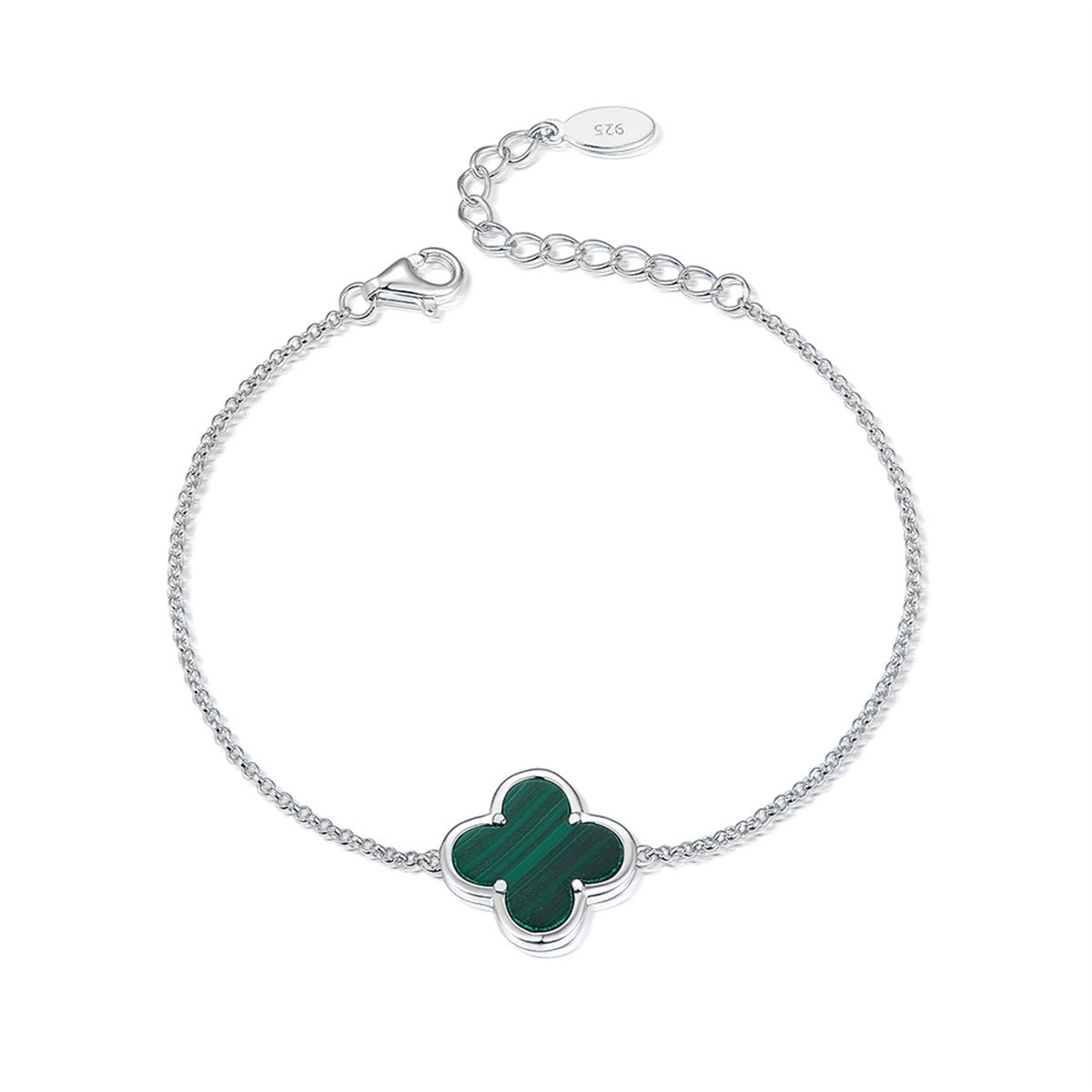 Wholesale 925 Sterling Silver Natural Malachite Fourleaf Clover Simple Style Seiko Bracelet And Earrings Set For Women