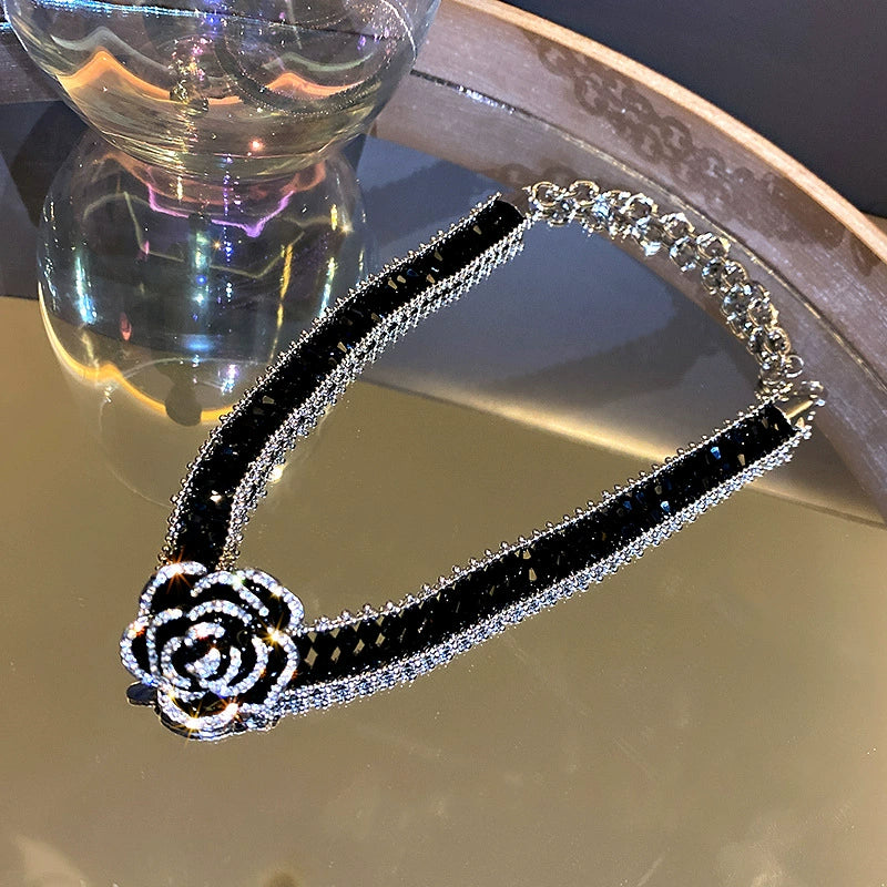Wholesale Artificial Crystal Rose Flower Necklace Fashionable Design Short Clavicle Chain