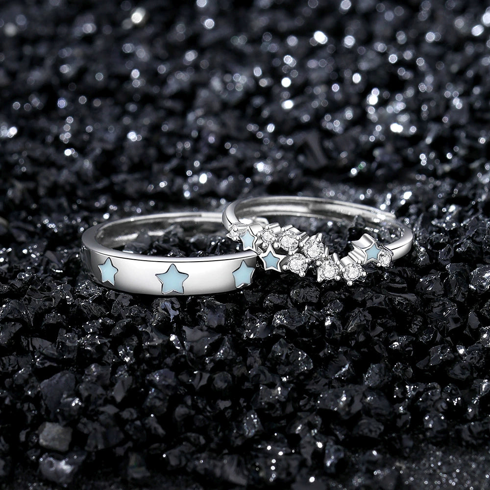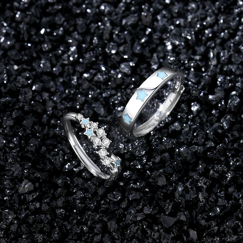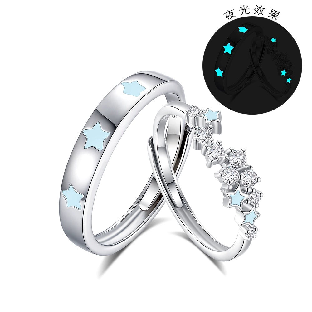 Wholesale Couple Ring 925 Silver Fluorescent Star Electroplated Luxury Highend Jewelry