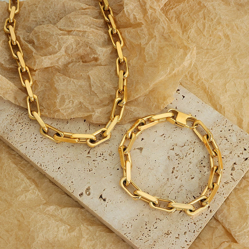 Wholesale Cuban Chain Necklace And Bracelet In Titanium Steel With Electroplating For Men And Women