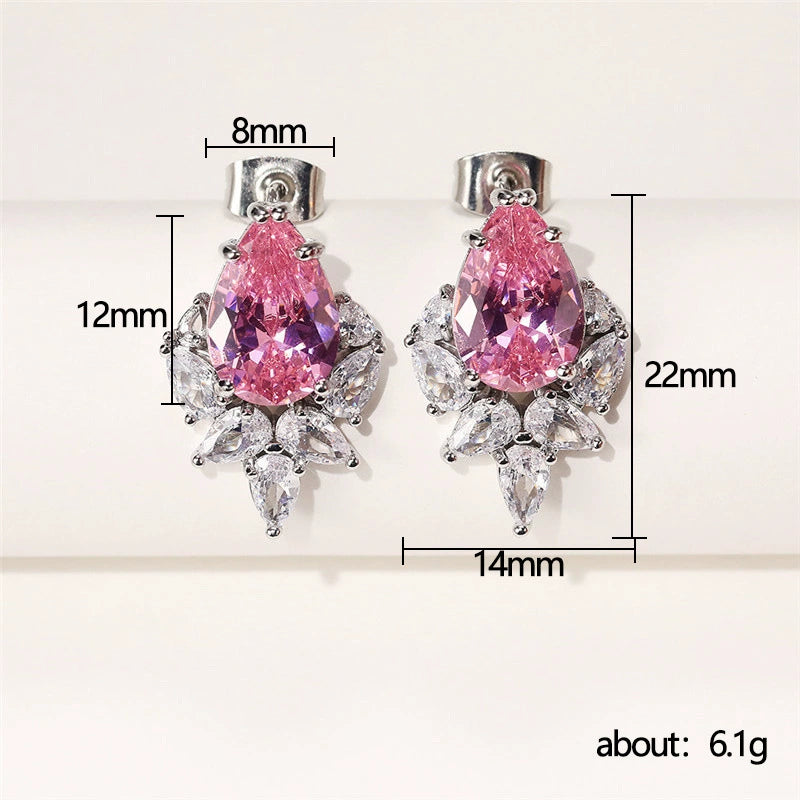 Wholesale Earrings Copper Pink Diamond Water Drops Pearshaped Ice Flower Zircon