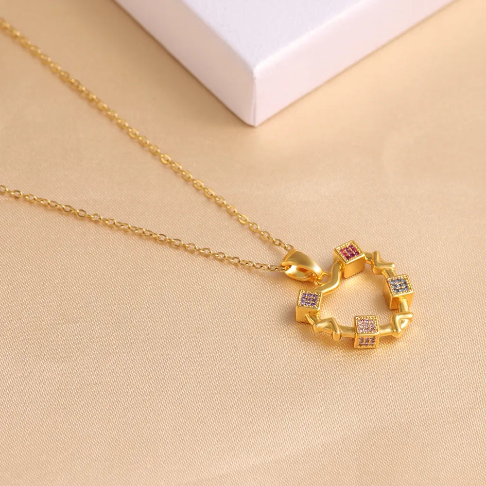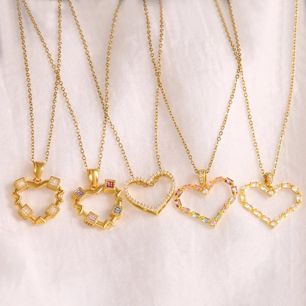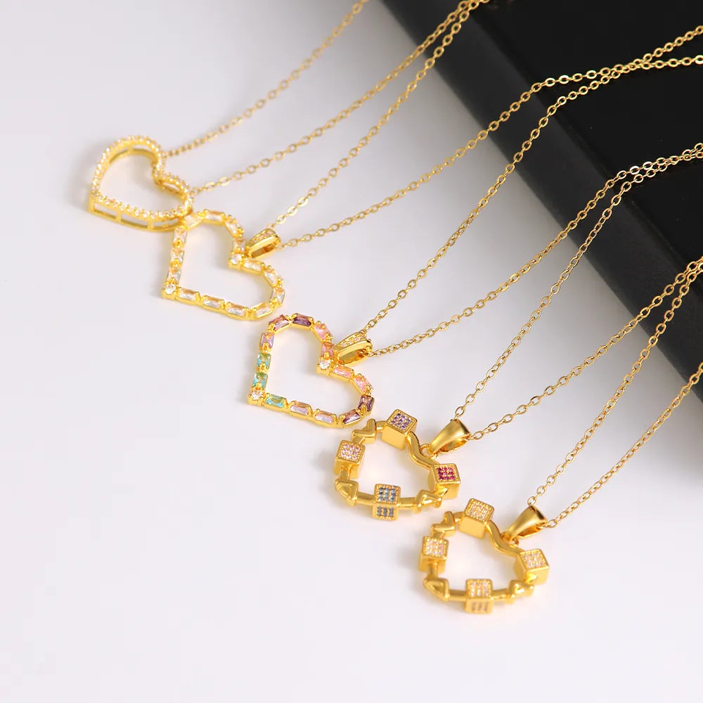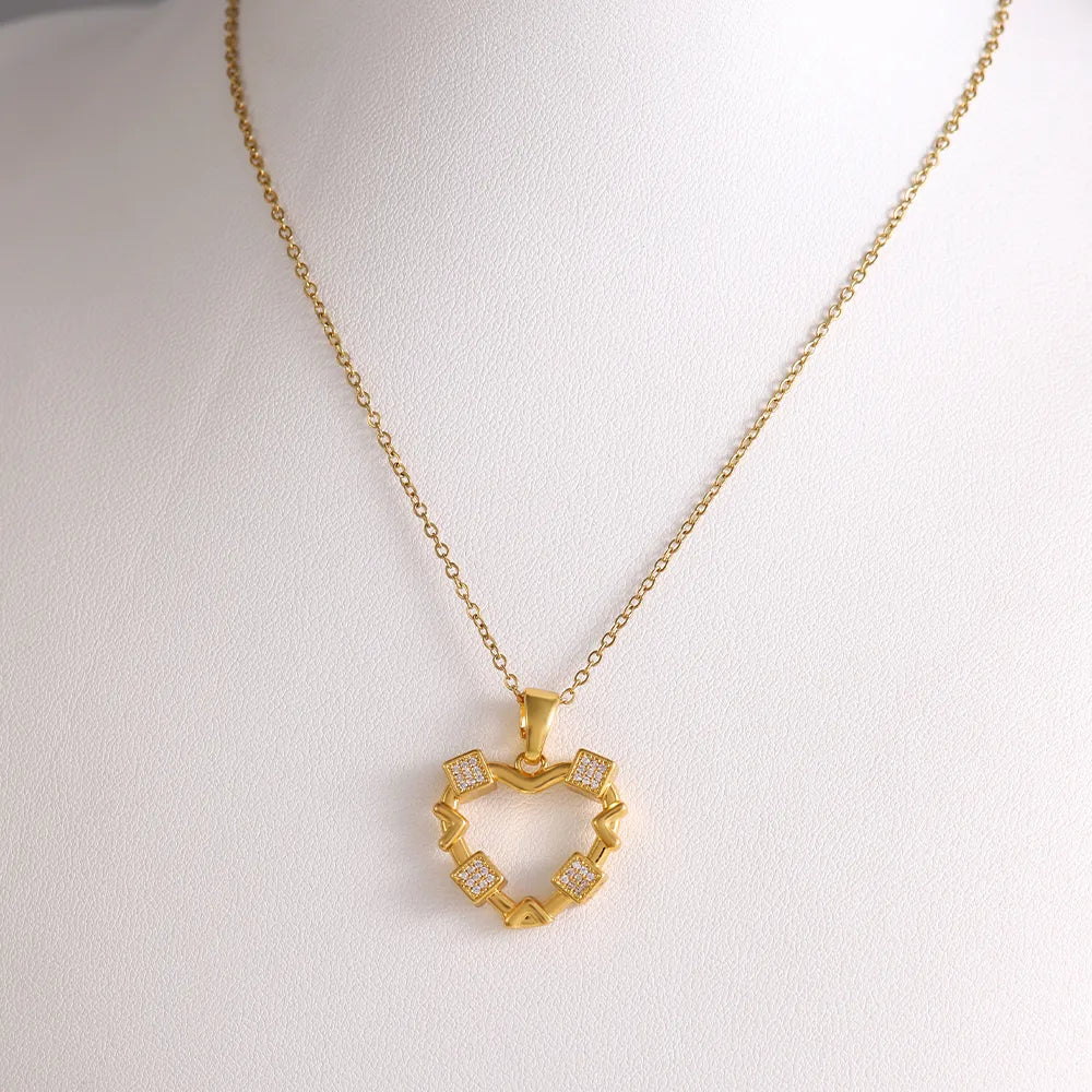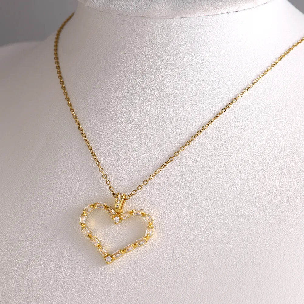 Wholesale Elegant Simple Style Shiny Heart Shape 304 Stainless Steel Copper Plating Inlay 18K Gold Plated Zircon Pendant Necklace