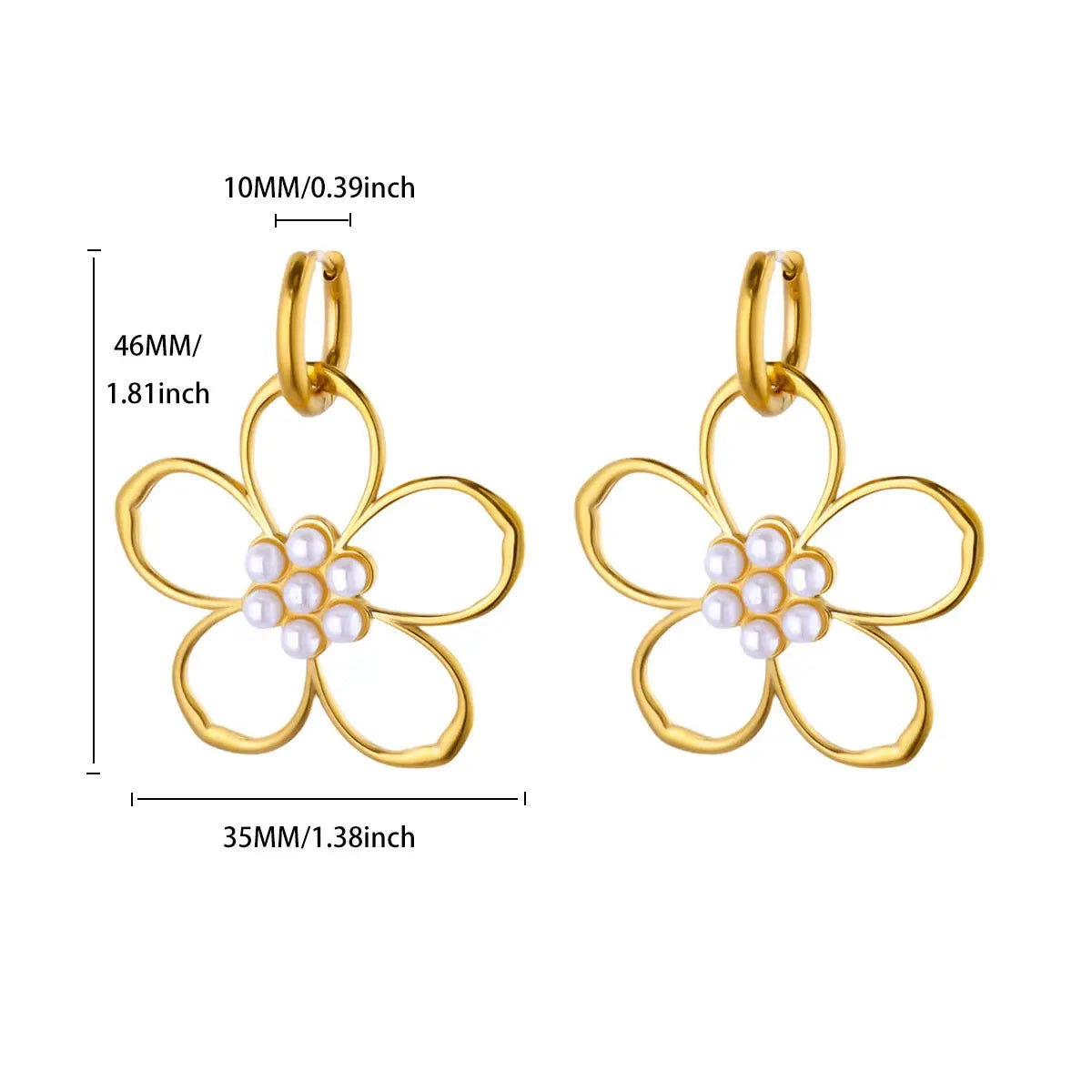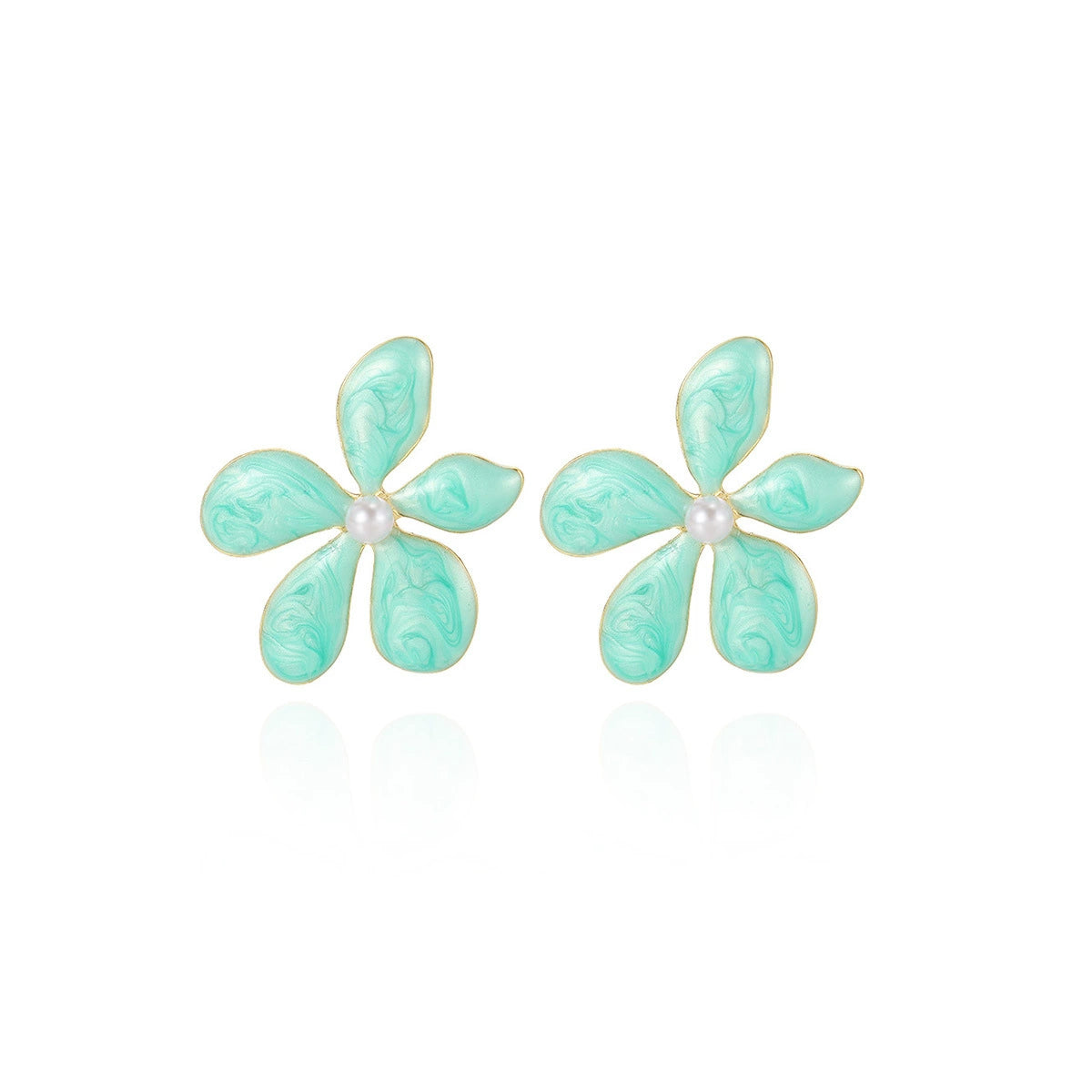 Wholesale Fresh Oil Painting Style Geometric Pearl Earrings With Electroplating And Love Flower Design For Women