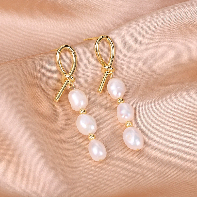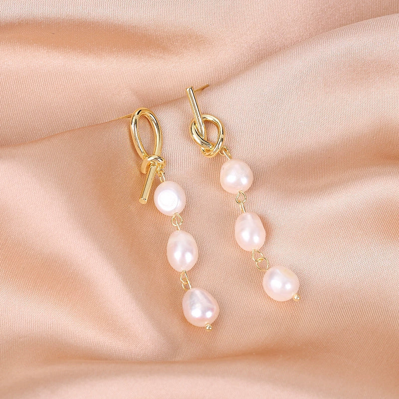 Wholesale Freshwater Pearl Earrings Baroque Style Geometric Design Electroplating For Women