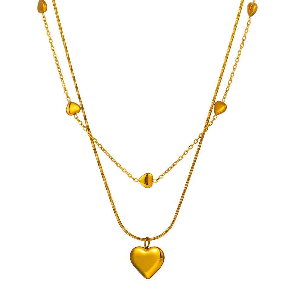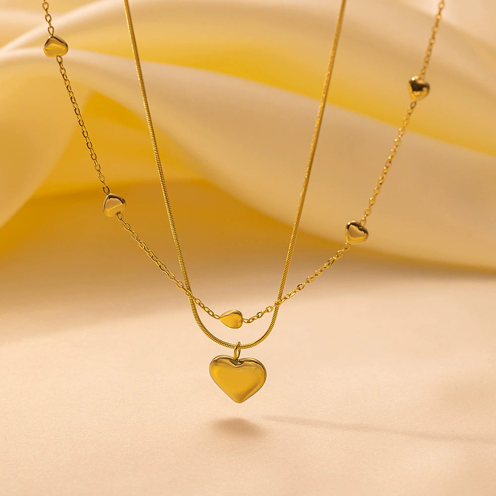 Wholesale Heart Shape 18K Goldplated Titanium Steel Double Layer Snake Bone Chain Necklace For Women