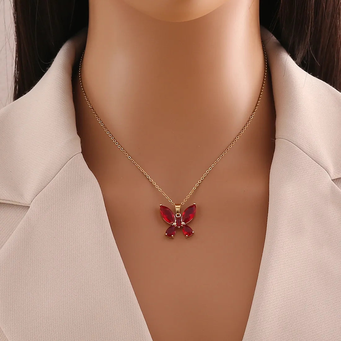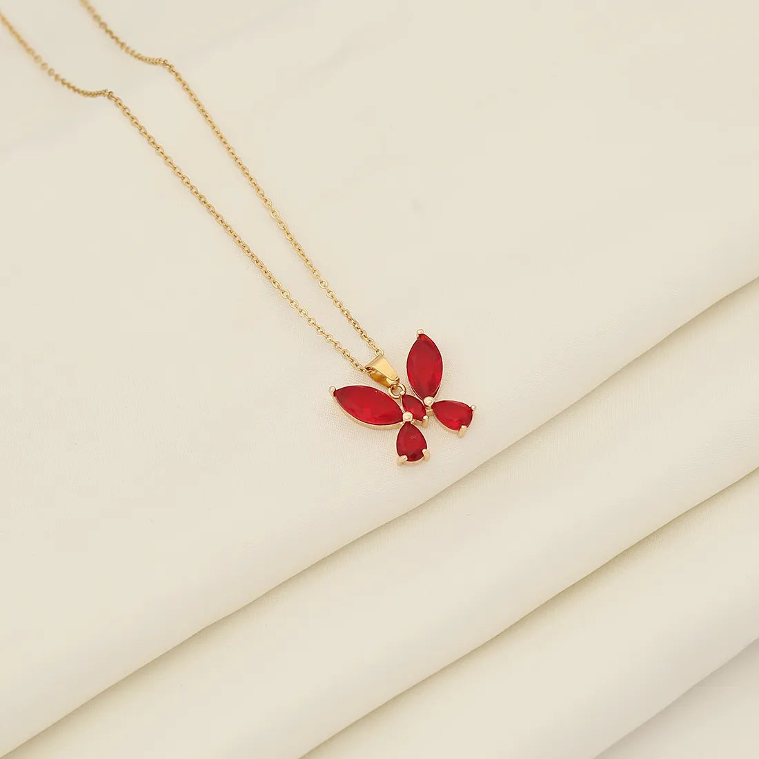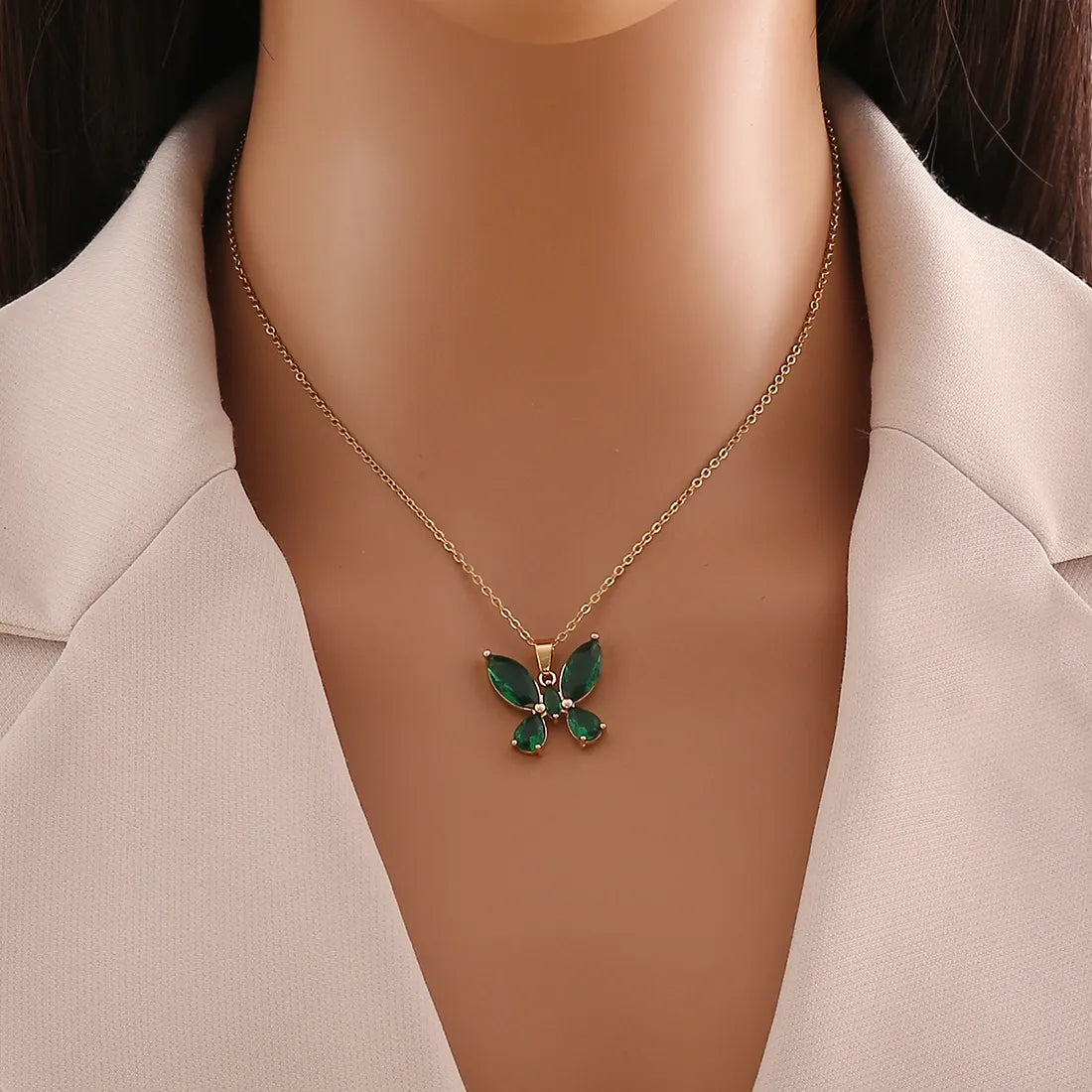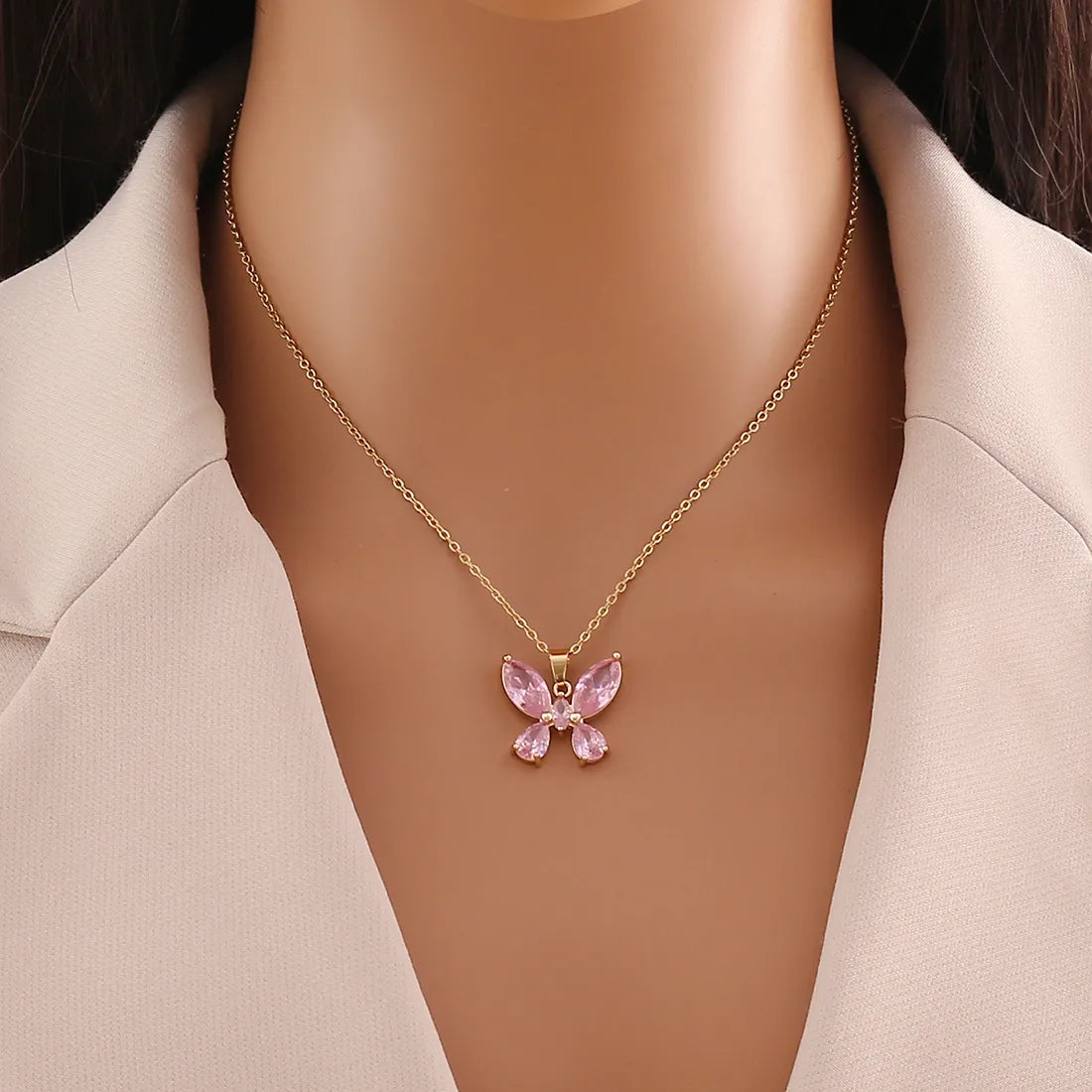 Wholesale IG Style Shiny Butterfly 304 Stainless Steel Inlay 18K Gold Plated Glass Pendant Necklace