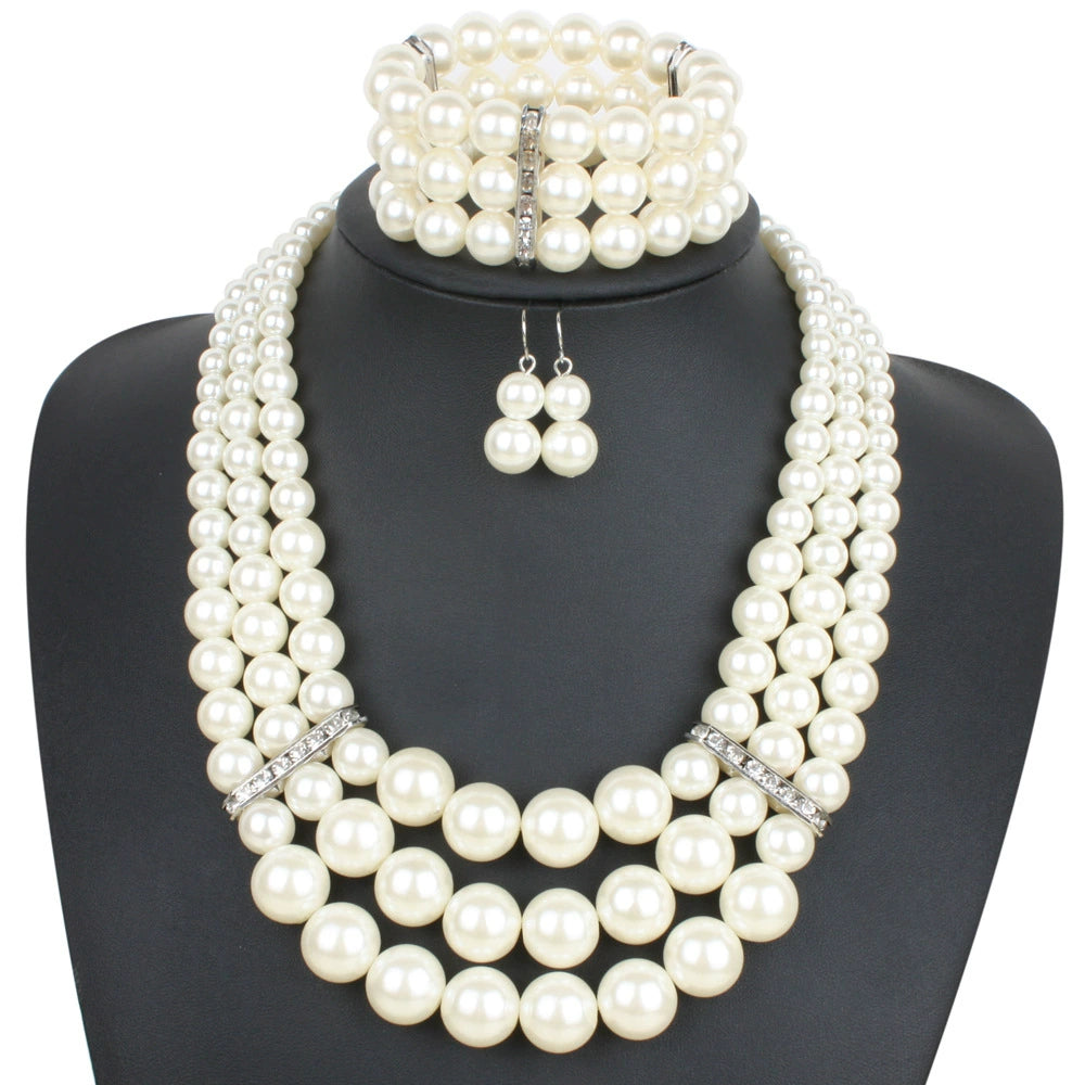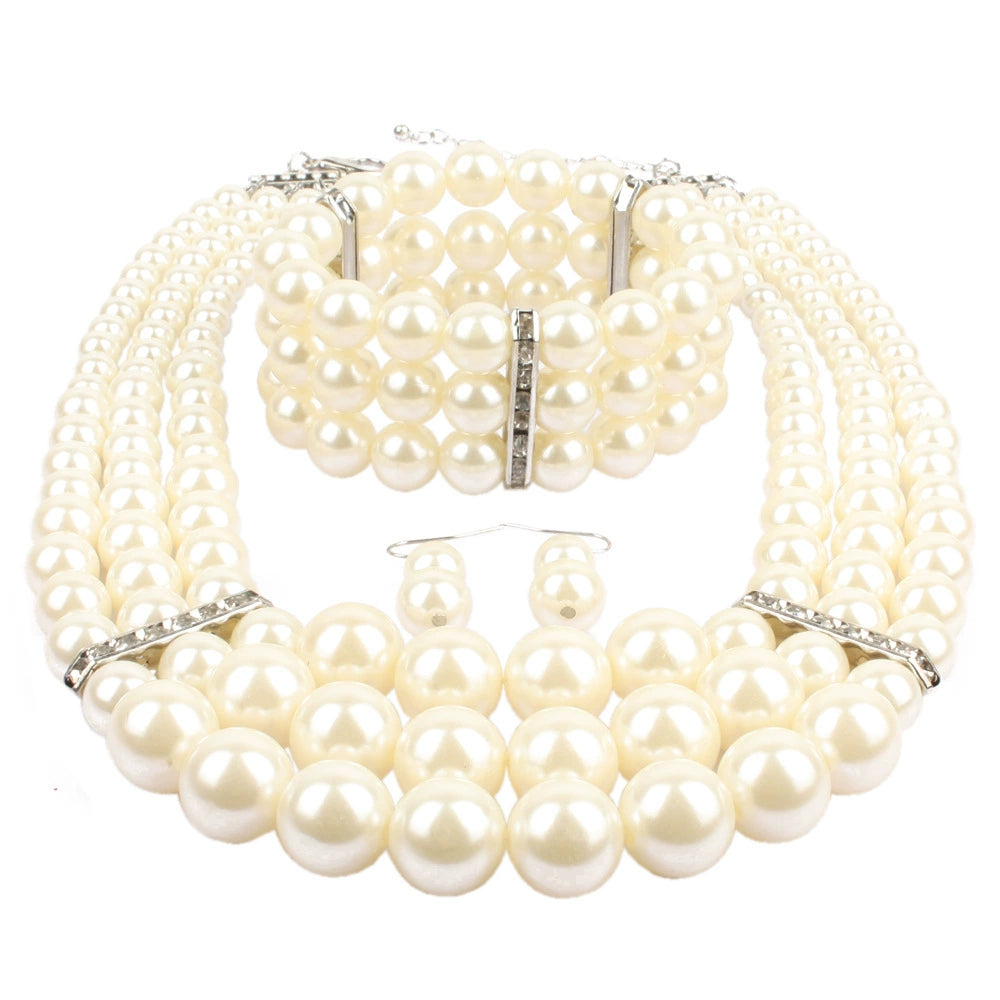 Wholesale Imitation Pearl Multilayered Necklace Set With Snake Bone Chain Geometric Style For Women