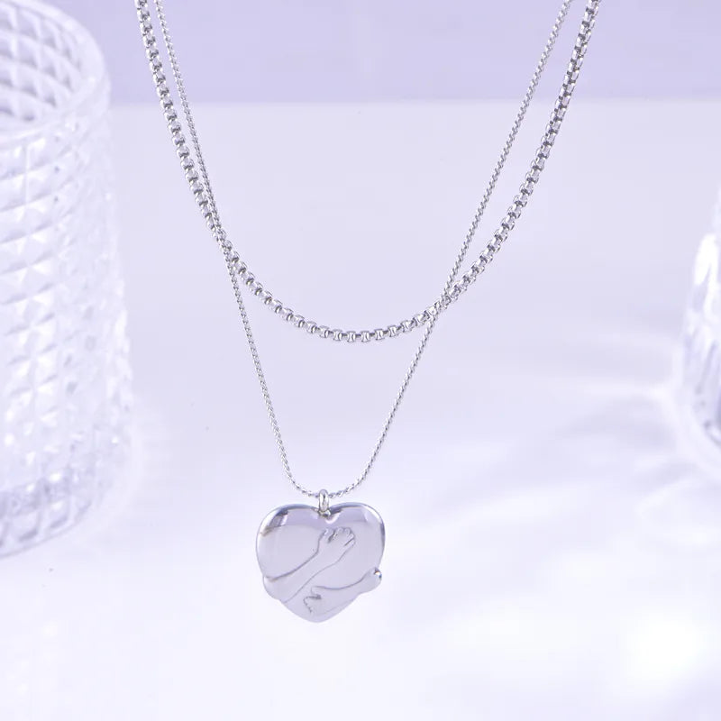 Wholesale Jewelry Basic Modern Style Classic Style Heart Shape Titanium Steel Plating Double Layer Necklaces