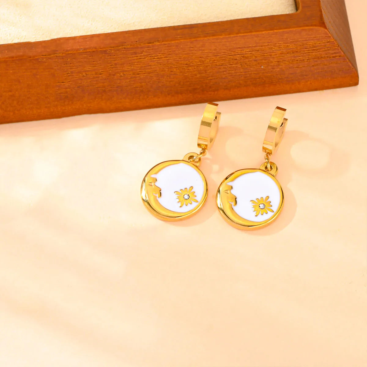 Wholesale Jewelry Basic Modern Style Classic Style Hexagram Titanium Steel Shell 18K Gold Plated Inlay Earrings Necklace