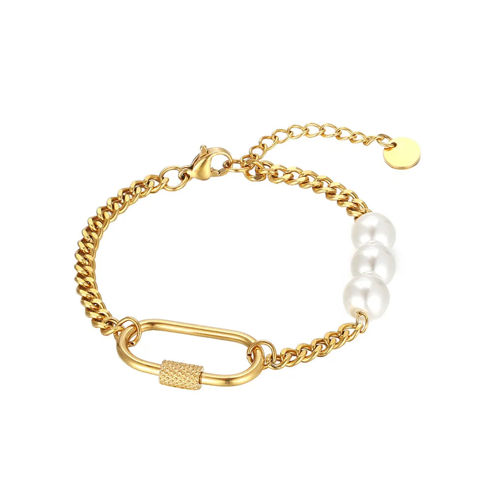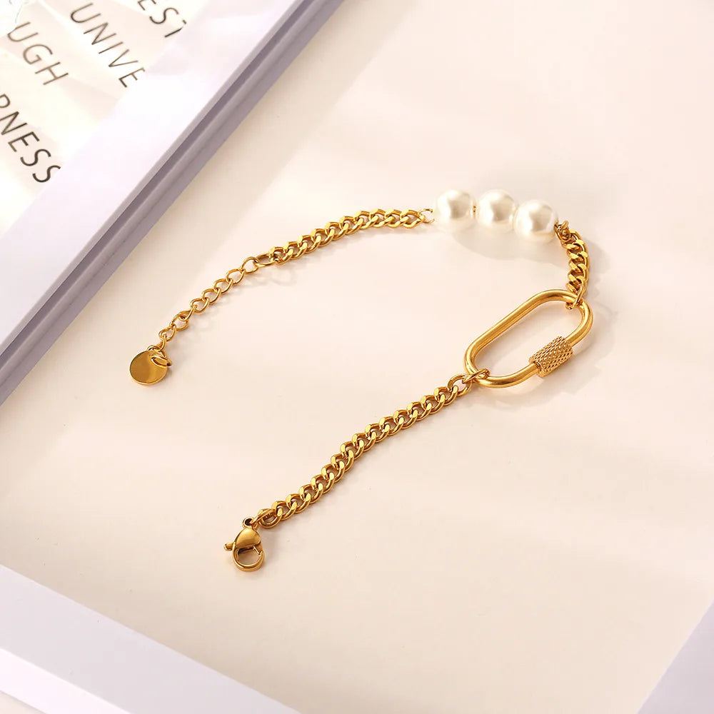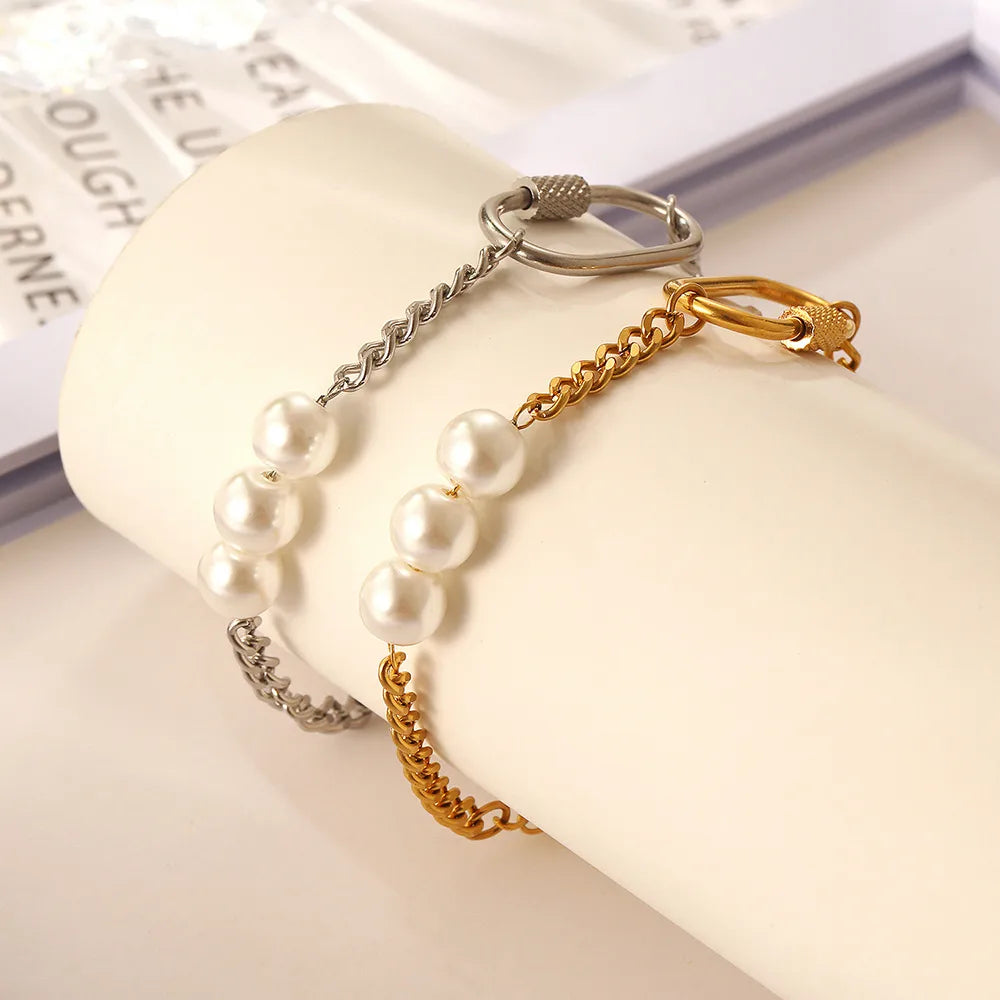 Wholesale Jewelry Basic Modern Style Geometric 304 Stainless Steel Imitation Pearl 18K Gold Plated Plating Bracelets