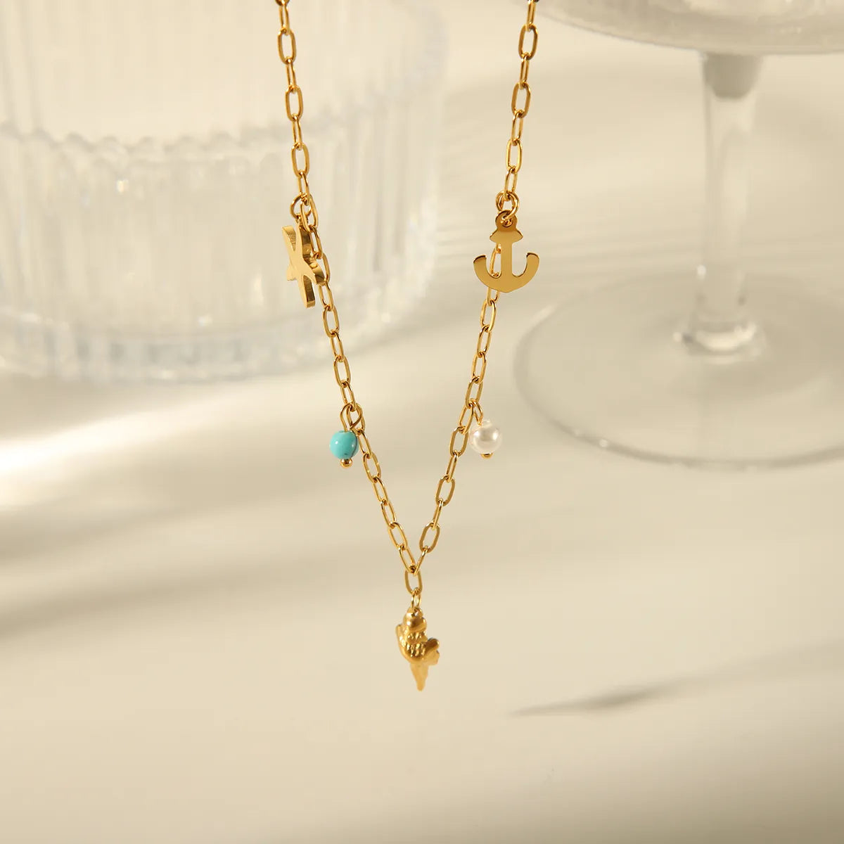 Wholesale Jewelry Beach Commute Dolphin Shell Fish Tail 304 Stainless Steel Acrylic 18K Gold Plated Plating Inlay Pendant Necklace