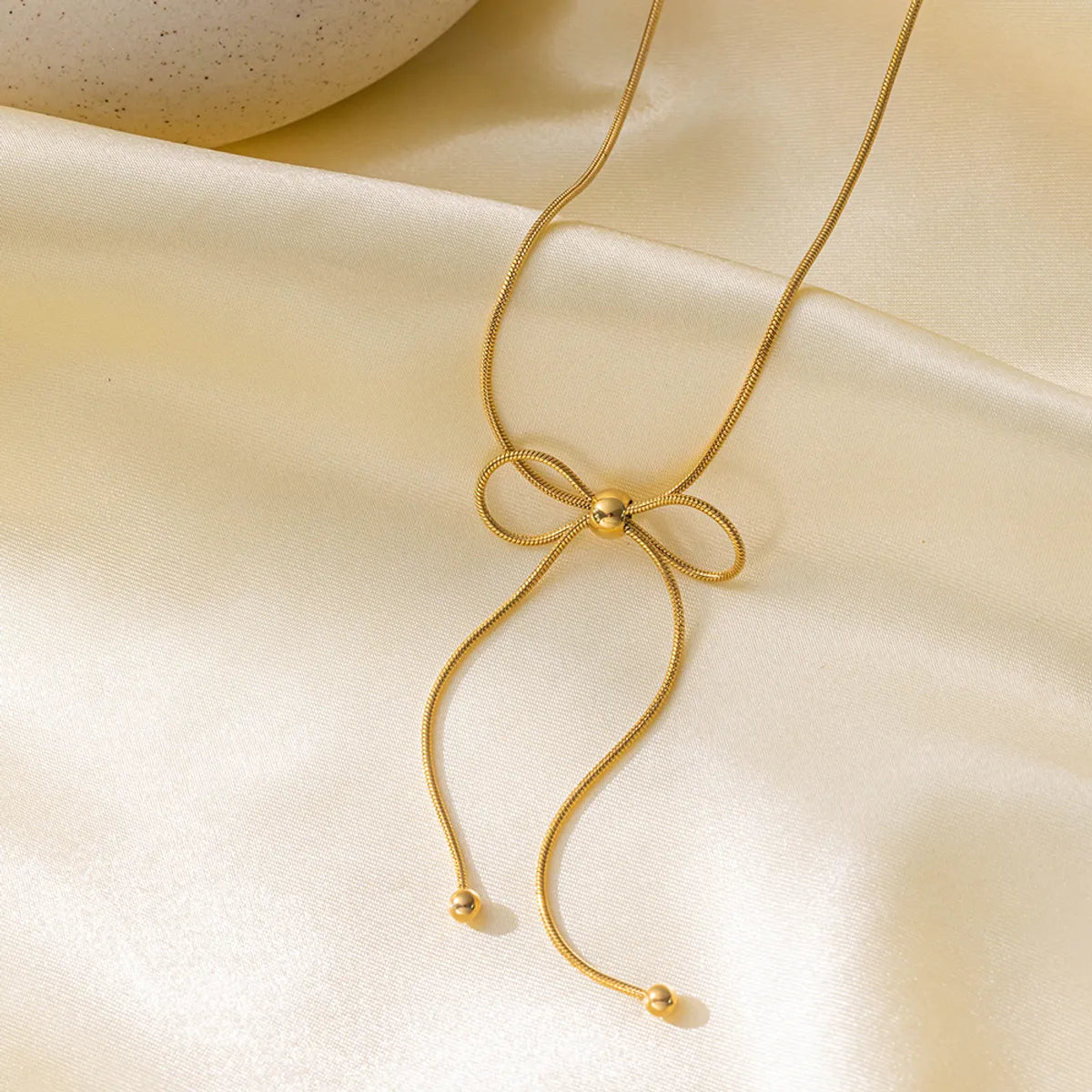 Wholesale Jewelry Casual Commute Bow Knot 304 Stainless Steel 18K Gold Plated Polishing Plating Earrings Necklace Jewelry Set