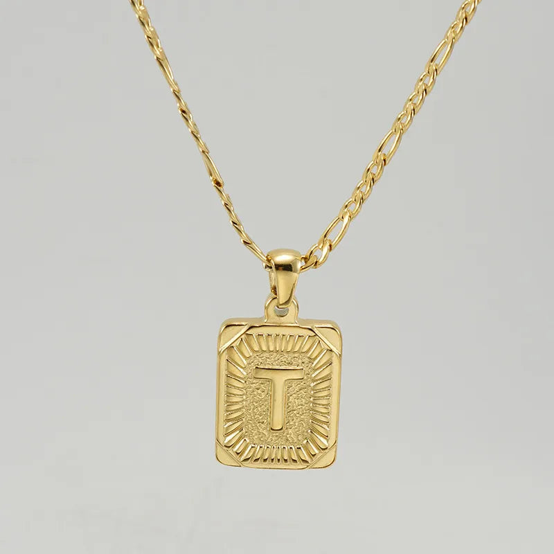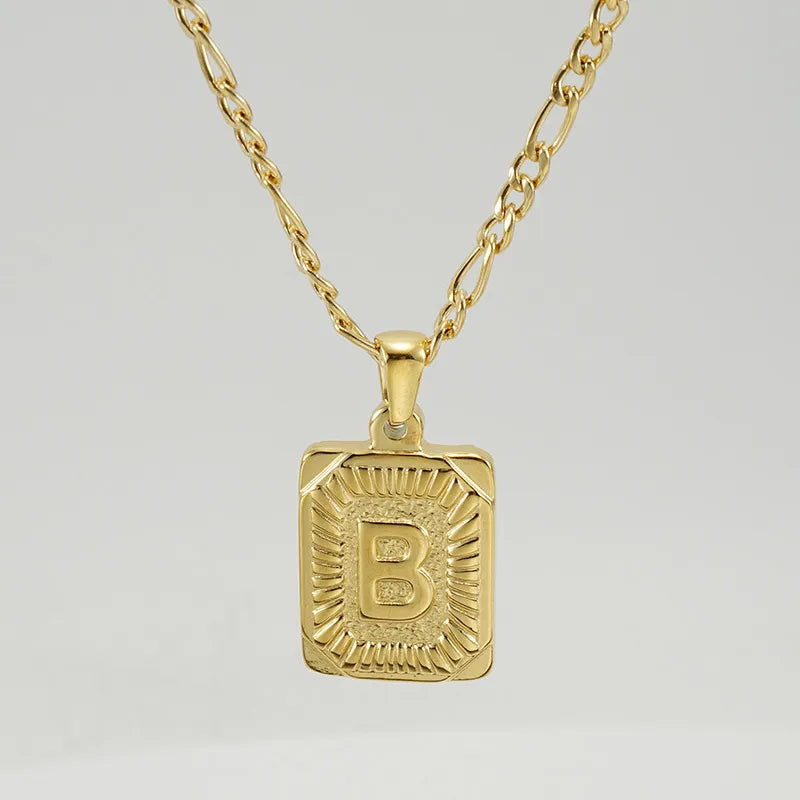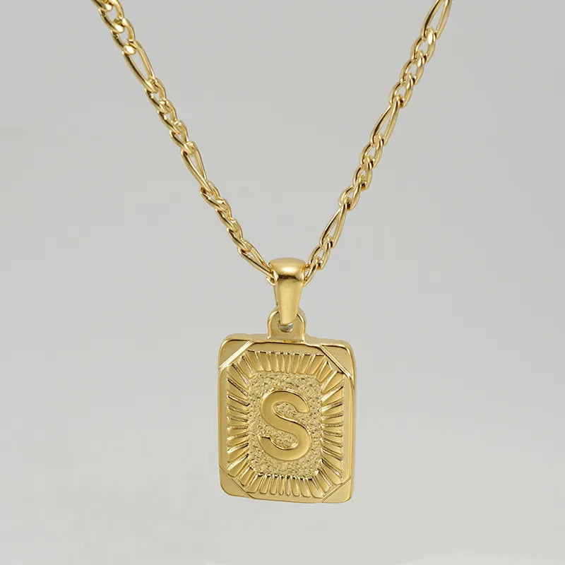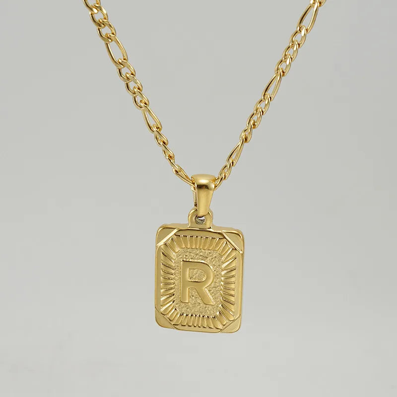 Wholesale Jewelry Fashion Letter Rectangle 304 Stainless Steel Titanium Steel 18K Gold Plated Gold Plated Pendant Necklace